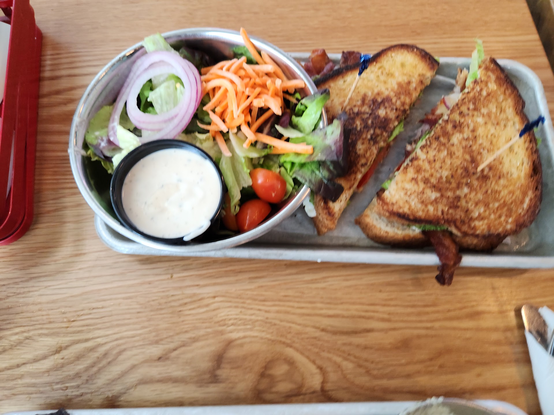 Read moreI just had an odd experience all the way around in my visit to Roosters. I was getting a burger in a to-go order when passing through the airport on a layover. The waitress started out the interaction by ranting about low tips she was getting that night, even walking away in the middle of my order to show a co-worker someone else's tips and speaking in a relatively loud voice about the tips. Throughout my brief stay, she frequently was saying numbers - which I could recognize was the total order dollar amount and then note the dollar amount she was getting in tips. Clearly she expected a certain percentage. I was lucky enough to keep my involvement with this to a minimum. After getting the food, the burger looked decent. However, I ordered a Gorgonzola burger. You would typically expect a pretty strong flavor for a burger like this, but for only one bite could I taste any Gorgonzola - one of the last bites. Otherwise it was a decent, very plain burger. I also opted to get coleslaw as a side, instead of fries. The coleslaw given was a tiny amount, maybe 4 mouthfuls (on the generous side). Also, I don't think it was coleslaw at all, it tasted like plain, dry cabbage with no sauce. Overall, not impressed. Hopefully it was just an off day...