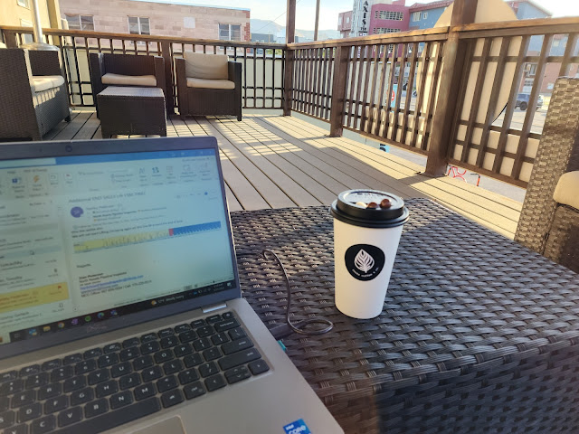 Upstairs, there’s a cozy outdoor patio with plenty of seating, perfect for enjoying your coffee with a view. Inside, the space has lots of seating options, from tables to couches. They’ve also equipped the space with plenty of plugs and free Wi-Fi, making it ideal for working, studying, or just relaxing.