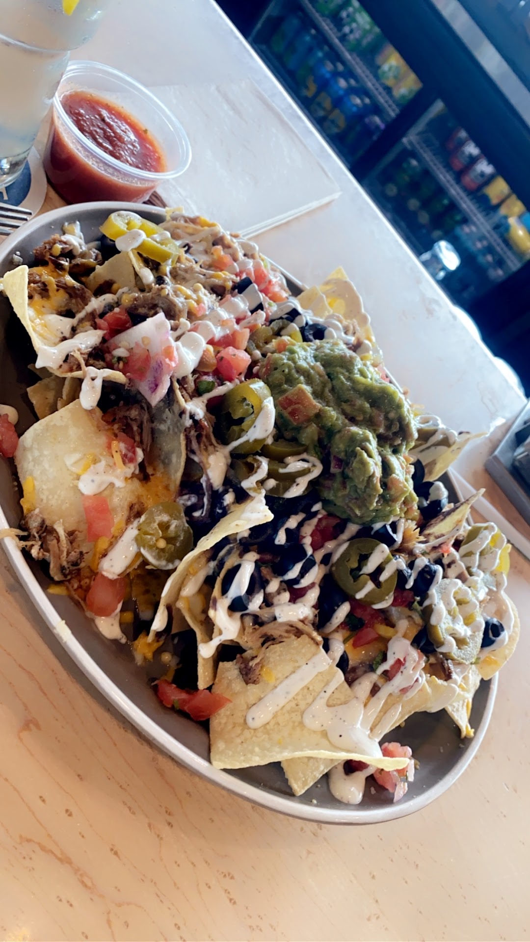 Read moreIt’s an airport bar huge space for what it is but it seemed lively so I went in - Service was horrible from the entrance I stood there did not know whether to sit myself or wait. No instructions and the servers just keeps walking passed people there not saying anything - after much waiting I noticed a spot at the bar. So I went there. No greetings from Bartender she cared less I was there - she did clean up for me though atleast - Came of a plane so I’m trying to hydrate I ordered lemon water - she got my water order wrong three times all I wanted to start was water with lemon no ice - ordered the Nachos “Carnitas”seemed decent from the description but honestly was disappointment all around - No flavor from the carnitas at all just soft mushy meat - I was excited because it was power packed with “veggies” however all were canned could taste the lack of freshness in it all from the jalapeños to the black beans all tasted canned so it took away from the food being good just bluh really - ate what I could out of it since I’ve been traveling all day threw the rest away. so I was cleaning up putting stuff in order make it easier for whomever to pick up the same bartender that hasn’t checked on me since she took my order proceeds towards me and asks you want your check!!!