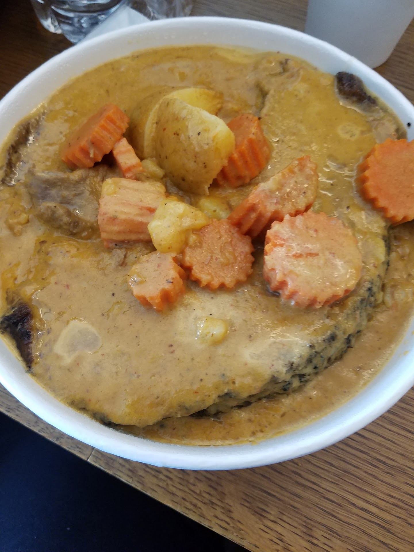 The Garlic and Black Pepper Chicken has a peppery and garlicky broth with carrots, cabbage and tender chicken. It is available as part of a combination plate, or as it's own entree with rice.