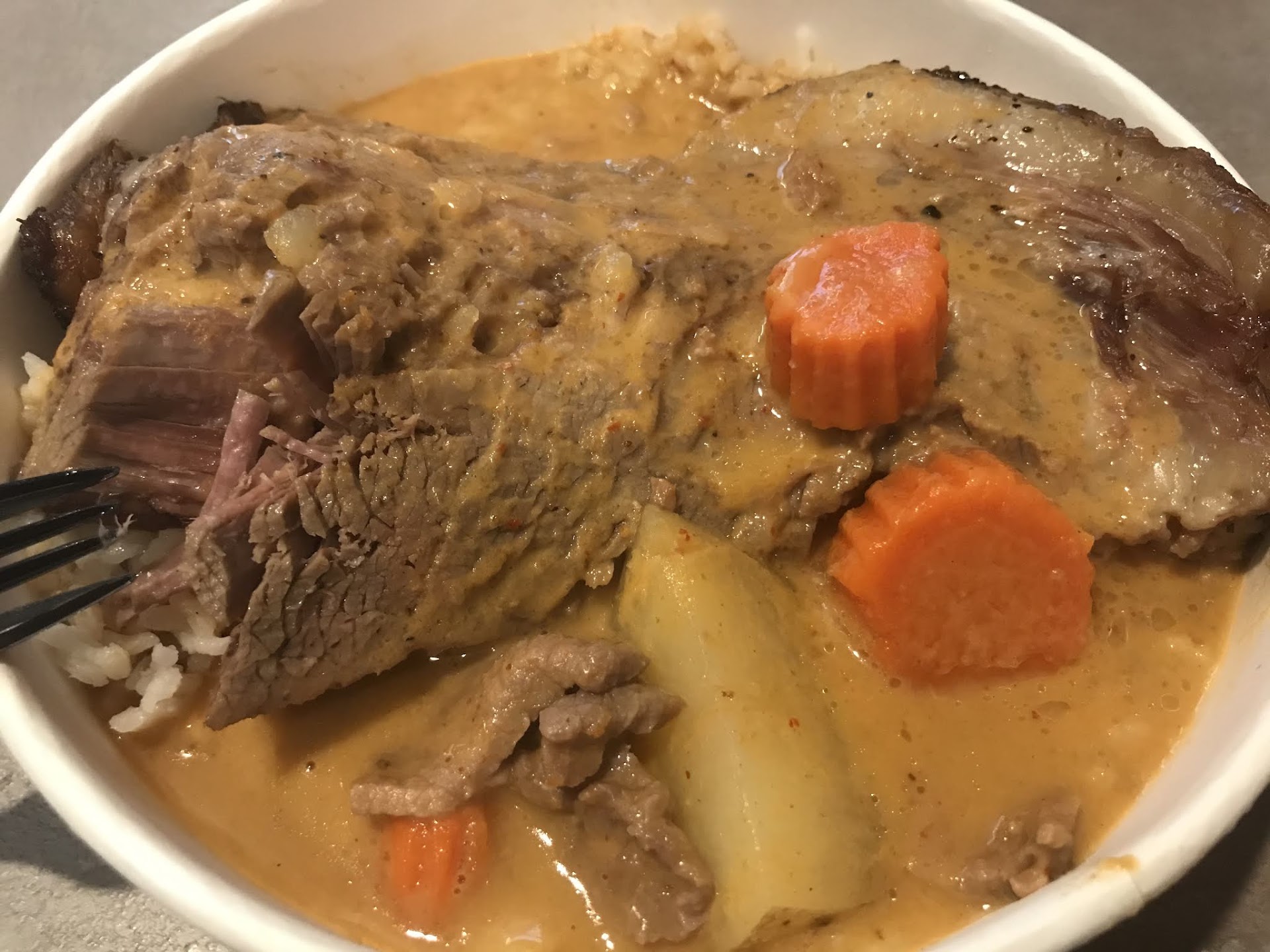 The Brisket Bowl comes with a very large slice of beef brisket, slow cooked to perfection, potatoes, carrots, rice, and some kind of creamy secret Thai sauce that is both savory and sweet at the same time. It's almost like cinnamon-y and complements the beef well. The portion is enormous and could be shared, but you won't want to! On a cold winter or rainy day, this is a great hearty meal to warm-up.