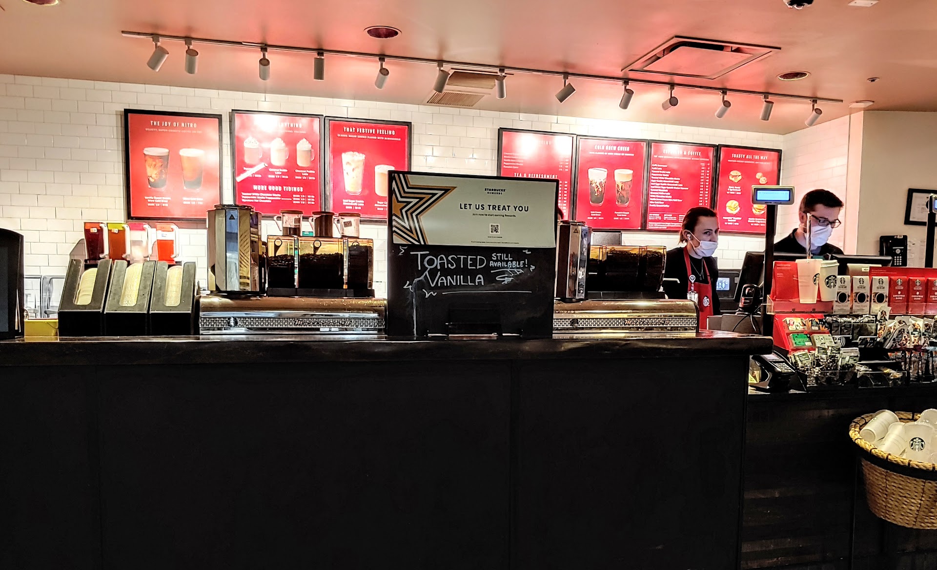 Read moreWalked up and was just stared at by a taller young man, no greeting of any kind. When I asked about whether they did Keurig cups or not the kids just shook his head. Since the Starbucks Carmel keurig cup uses a medium roast I wanted that, the Starbucks Carmel coffee in the bag is a light roast which is terrible and a medium roast version is not available in a bag only the Keurig cup. At no point was I even spoken to until I said well I guess I don't want anything and that's when I got an "okay". That was the ONLY communication I received from him at all. Starbucks seems to have a problem with that kind of service, this is not the only time this has happened to me at a Starbucks. I have even wrote an email at one point some time ago and NEVER received any response at all. Starbucks you have lost a customer...