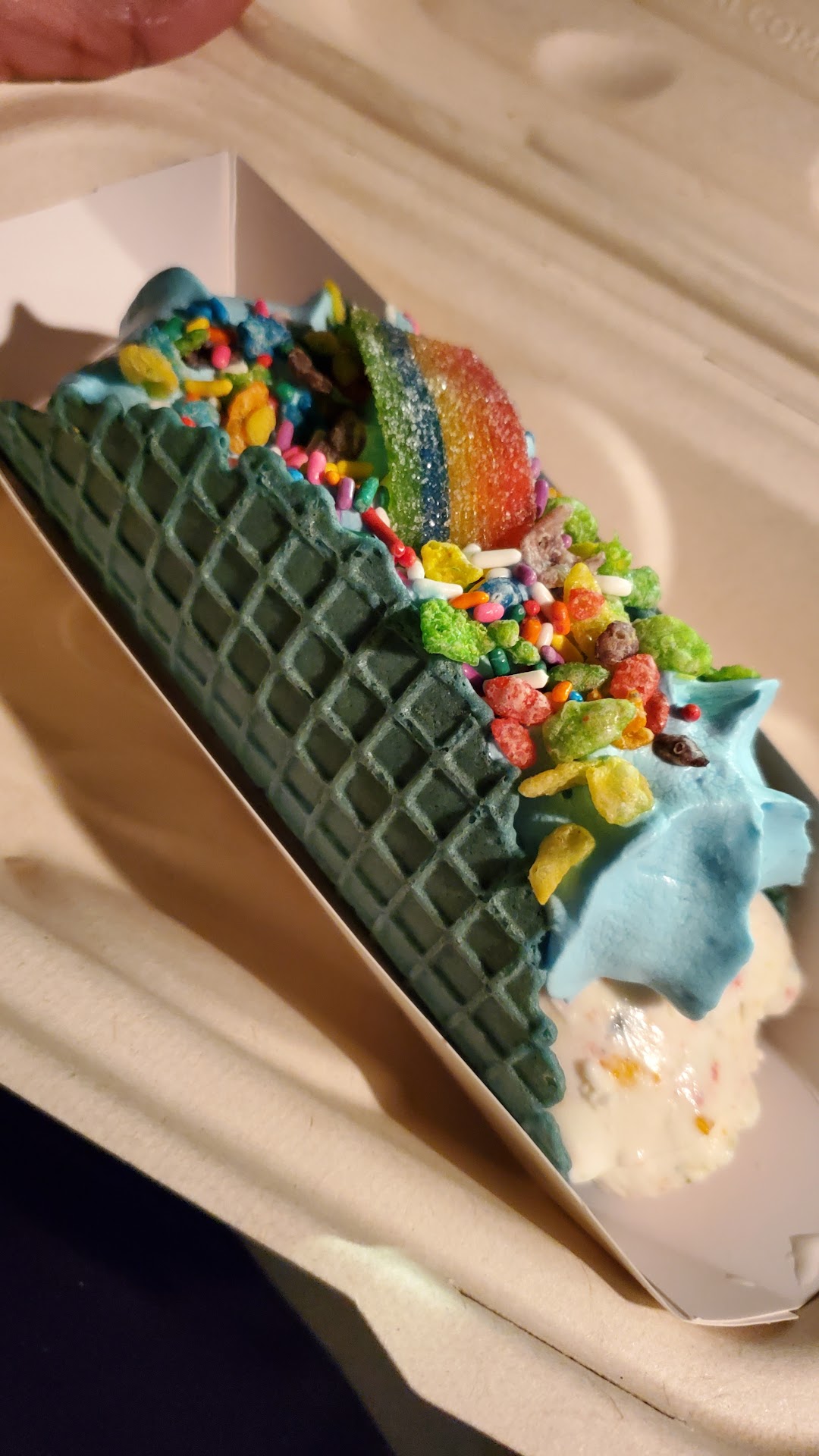 Read moreThis place gets a 5 on yumminess, but their customer service needs a little help. Theyâre all very nice, but they canât seem to make the orders in the right order. The first time we went it took a while, maybe 20 minutes, to get our two rolled taco desserts. I thought a few people that ordered after us got their orders before us (same items, just different flavor, but I knew they were short staffed so didnât say anything. But today we went in and ordered a milkshake. One single milkshake. We watched order after order go out, asked about our order, and was told theyâd forgotten but would do it right then. More orders went out, we checked again, they again said theyâd get right on it. Person after person that ordered after us got their food and left. Finally, 30 minutes later, we got our milkshake. They said âsorry, weâre short staffedâ, but that doesnât explain out they canât seem to make things in the order in which theyâre sold. We ended up having to eat our lunch in the 10 minutes we had left for lunch. Makes you think about going there...