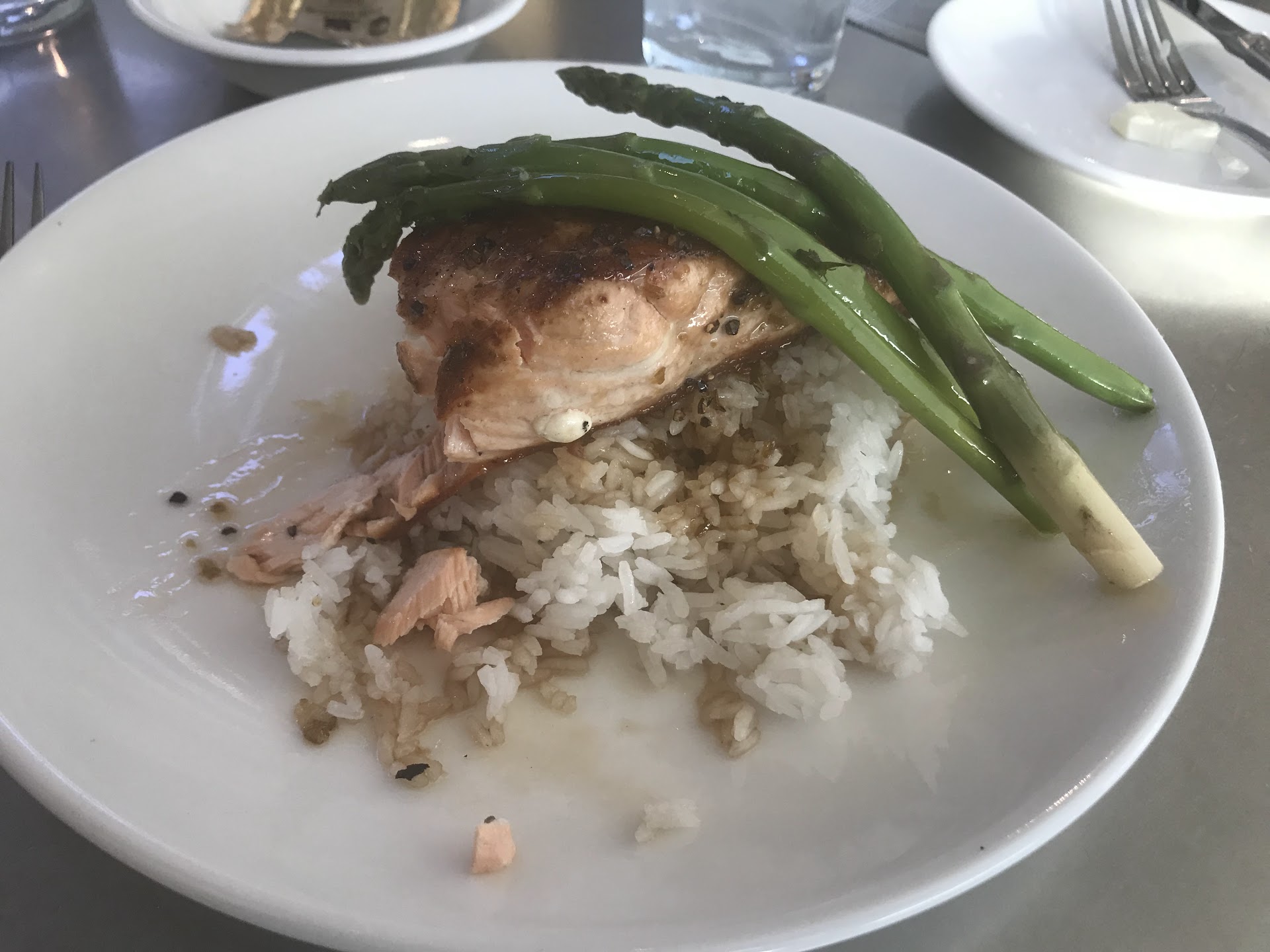 I'm shocked the rating isn't higher! I did hear, however, that when I went the menu had just recently been changed, so maybe before it wasn't as good. From my experience, this is one of the best restauraunts I've ever eaten at (and I've eaten at quite a few.) You probably already know how cute and light it is, and how amazing the view is, so I won't bother going into too much detail other than to say if you want aesthetic, go no further. I ordered the salmon with maple glaze, and subbed garlic mashed potatoes for the rice (subbing anything was very easy, and the waitress didn't make us feel like a burden at all.) The food was simply amazing. My salmon was perfect, just a slight crisp around the edges and beautiful flavor which dripped over the potatoes and made the meal exquisite. My mother got the roast chicken and garlic mashed potatoes and, afraid we would ask for a bite, waited until she had finished to proclaim that it was the best she had ever had. My father ordered the garden burger and french fries, and being of a more generous composition, made me try the fries because they were "too good to experience alone."