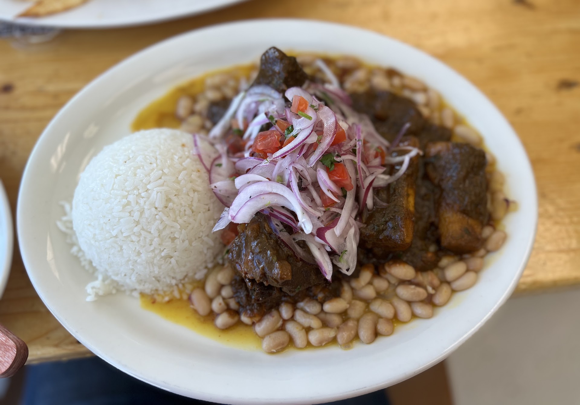 Peruvian restaurants are a great option for lunch specials as they usually have a plate for that. This time I went for the special plate; it was mondonguito and chicken soup with pasta.