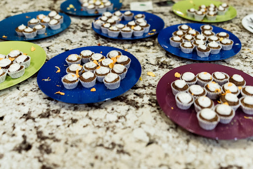 They prepared absolutely mindblowing, incredibly fresh, flavorful food. Guests told us they went back for seventh helpings of deviled avocados, cheese biscuits, and stuffed mushrooms, and cashew cheeses during the cocktail hour. The entrees (raw zucchini manicotti, masala brussel sprouts with silvered almonds, thai coconut curry with black rice, and macaroni and cheese) were served family style by the chefs, and people could not stop talking about how delicious everything was. The team prepared menus, which they laid out at each table. They also prepared mini carrot and chocolate beet cakes for dessert that they laid out after dinner, and which were all gone by the end of the night, after people had multiple helpings. They were constantly checking on how people were doing. One of our guests was a chef, and stated that the team from Zest blew him away.