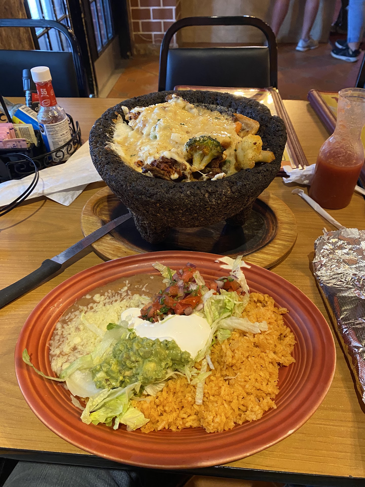 The menu is huge. Lots of choices. Please check out the online menu. Very reasonable prices. Appetizers like nachos, guacamole, queso. Salads. One soup- chicken. Steak, chicken and shrimp dishes. Vegetarian options. Kids menu. Desserts too. The portions are large. The food was served hot. Everyone’s taste is different. We like flavorful food; some may say spicy. This food is not spicy at all. The salsa is just puréed tomato. The tortilla chips are crispy and unsalted. The Mexican rice and refried beans are ok. Again, portions are large. The flavors...
