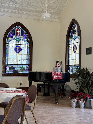 Very pleasant, attentive service. The coffee varieties are well above par for the area. Breakfast menu offerings are local and home cooked. Not so sure about the stained glass windows though. I mean, it’s a novel idea to repurpose a church into a cafe but; I just don’t feel so reverent or holy when I need a good cup of joe. I actually feel a little decadent/guilty sometimes when I indulge in a great coffee (which they definitely have!) A catholic here, so I get enough of the guilt anyway so kinda don’t need to be reminded of that first thing in the morning. I usually grab a take-away coffee and croissant and don’t go upstairs to the old church. They do hold some yoga classes in the old church, so I kinda see where the stained glass might be OK for that. Suggest they get better established, and take the stained glass windows out and replace with clear to create a more airy, less heavy atmosphere. Was always taught to be quiet in church so the stained glass, to me, doesn’t promote lively conversation typically found in a cafe. They could mount the stained glass panels on the walls or hang from the ceiling to cast colors around the space. That would be cool...
