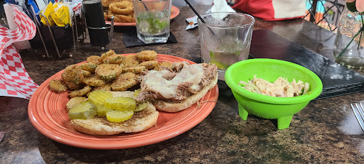 When we walked upstairs, we were confused as to where to go. We followed a sign into the saloon past 2 women sitting in a booth. One of the women sitting at the booth came in and lo and behold they "work" there. We were told that we just walked thru the restaraunt and were allowed to pick our own table. The waitress acted as if we were a bother. Did not smile, introduce herself, talked to us from halfway across the restaurant because she couldn't be bothered to walk all the way to our table. But I'm sure she was very busy, as she and 2 other people were still sitting at that same booth hanging out on their phones. Waited 20 minutes for an appetizer that never showed and we wound up cancelling, after we hunted down the waitress. We were planning on making the best of a crowded pool and billiards area, but the poor service turned us off. We came here for a birthday dinner, and we were sorely disappointed. 1st time and last. Paid for our drinks and walked the 2 blocks to Miss Hatties, which...
