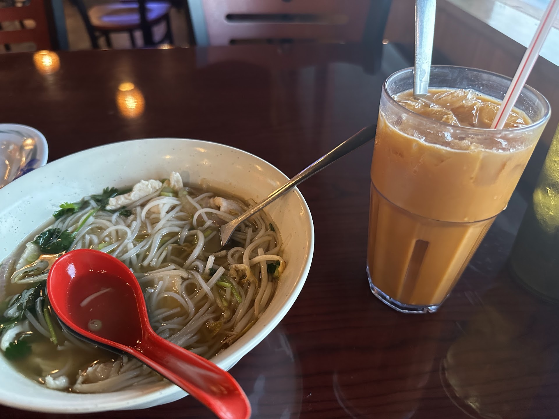 The staff is always friendly, smiling, and attentive! They always offer to go containers/cups too which is great. The prices are really good for the portion sizes—i eat what I can in the restaurant but still have enough for another meal at home! I love the amount of cilantro they give, just wish that you could request jalapeños instead of getting bell peppers to put into it (but once again, that is just a personal preference). The Thai tea was great, perfectly sweet and a great serving size. The rangoon was okay, nothing to write home about but that’s probably because we recently made crab rangoon at home. The only thing to note is to be weary of the to go containers for soup, the lids aren’t super stable so they can spill a bit easily! Next time I’ll get shrimp spring rolls and I want to try some of the noodle dishes and curry.