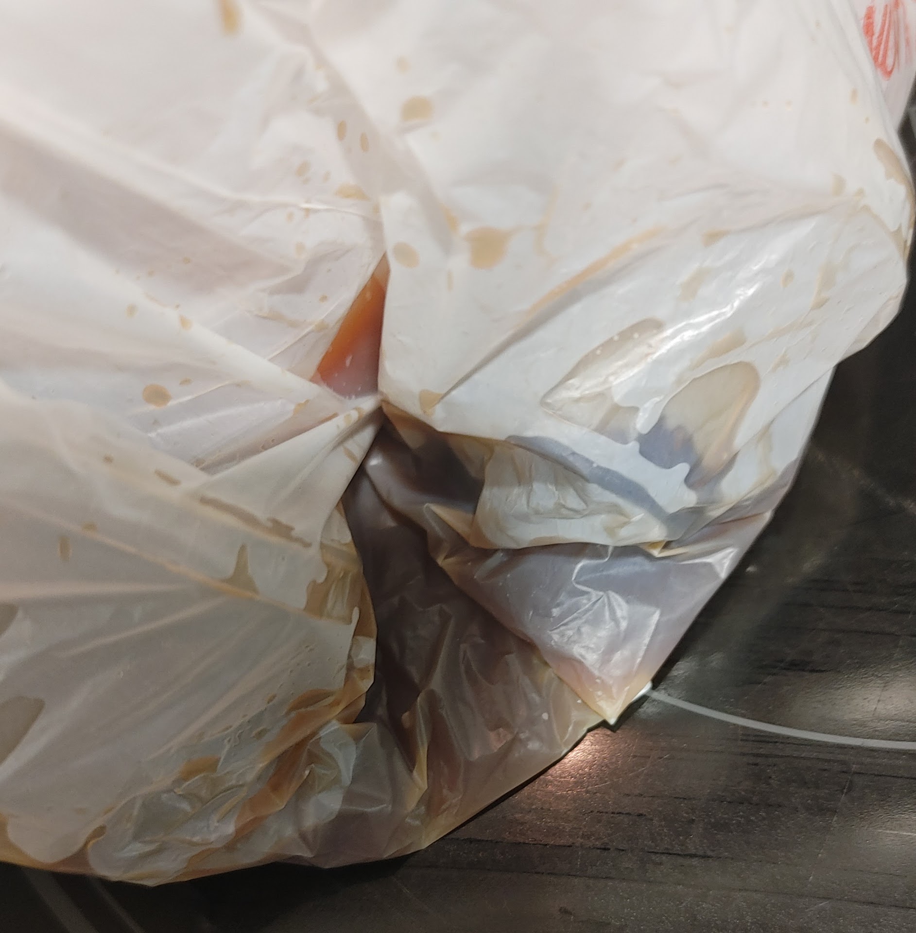 The food was quick (there was no one else in the establishment). BUT this is where it fell apart. Once we got home, we realized that one of the sauces had leaked out into the bag and had covered everything in sticky brown teriyaki sauce. THANKFULLY, none of the bags had holes or that would have been an unpleasant and messy situation.