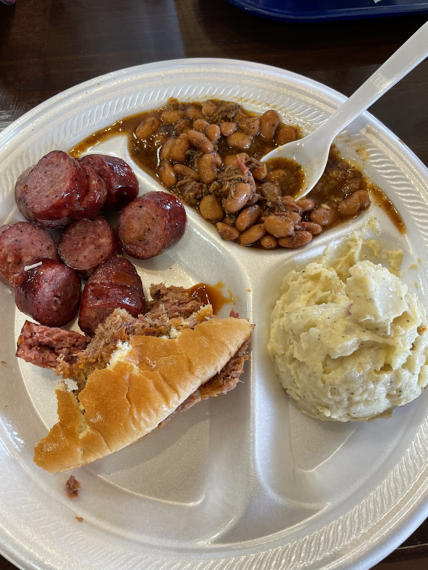 Read moreHopefully my review gets seen as constructive criticism to help the business do better to bring in more customers. The main reason I went with 2 stars is because the brisket, which I feel should be the star of the show disappointed so much. The brisket was dry and rubbery . I’ve been to many barbecue restaurants and this was the worse . The sausage, pork ribs and turkey were good but nothing amazing . Another reason for two stars is the portions . I paid $50 for my plate and a baked potato and for that price, I’ve seen way more served on my plate. At first I thought they forgot to give me another plate with the rest of my food but no, that was it. Third reason why I gave two stars is because there was no Mac and cheese. I ordered two sides of it and was told there wasn’t anymore and if I’d want some other sides. I told them I’d wait for the Mac and cheese thinking it would be ready in a few minutes I didn’t get the Mac and cheese until after I had long been done with my meal. To top it off, the Mac and cheese was horrible. It was like the box Kraft Mac and cheese but more liquidity. I literally walked over to the garbage can and threw it away. The third reason behind my rating is the baked potato didn’t even come served ready to eat. Every bbq spot I’ve ever been to serves it ready to eat. My girlfriend had to do all the work. So with that being said, I hope this place takes the review and...