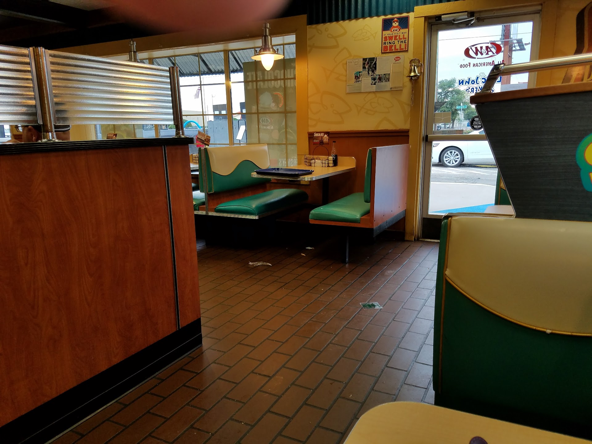 Read moreHad one car in front of me. Got here at about 4:50PM on a Saturday. Ordered popcorn shrimp, fish & shrimp platter, two freeze floats, a small root beer and a double cheeseburger with meat, cheese , ketchup and mayo. Firstly, tried to order at the machine in the drive through, was told to pull up to window, ordered there and waited.... and waited...... and waited.... they handed out the fish and shrimp platter and freeze floats. She then told us to pull forward. We again waited and waited. I finally got the cheese burger but she forgot the popcorn shrimp. We again waited a few more minutes and finally received it. Also, when I got my cheeseburger it was wrong I just didn’t want to wait any more. Rather than meat, cheese, ketchup and mayo I got everything on it including tomatoes and lettuce.