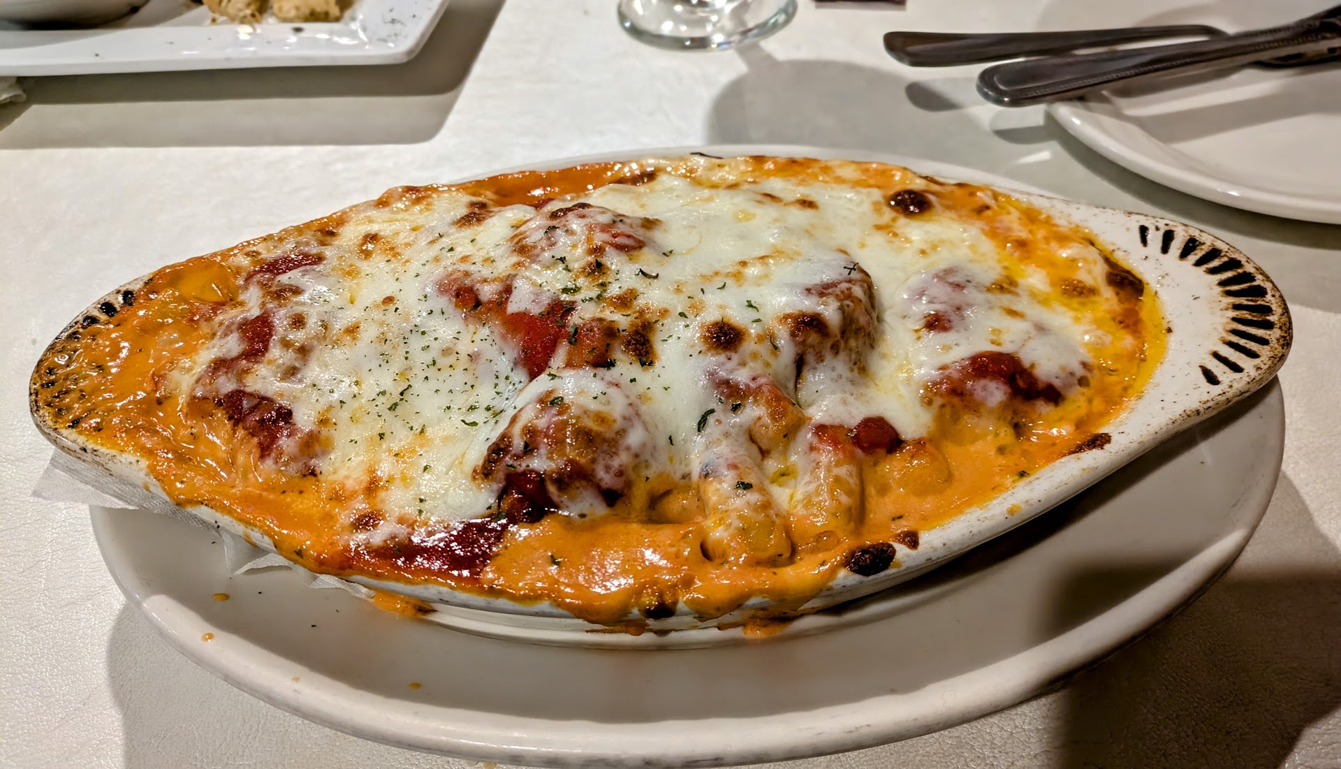 The food was DELICIOUS!!! The stuffed mushrooms was a recommendation that did not disappoint us. Flavor was there and the sauce was addicting. The pink sauce, the garlic & oil goes perfect with the bread. I just got the spaghetti with meatsauce and they even presented that dish very well and the flavor was there to go with it. My wife ordered the Pomadora and she was not unsatisfied with the flavors that dish offered as well as the presentation of her dish. Each of our dishes had plenty of food on them. Their Chocolate moose was also delicious.