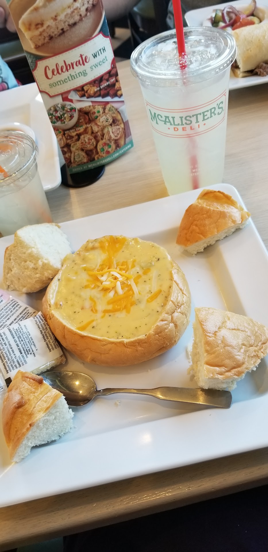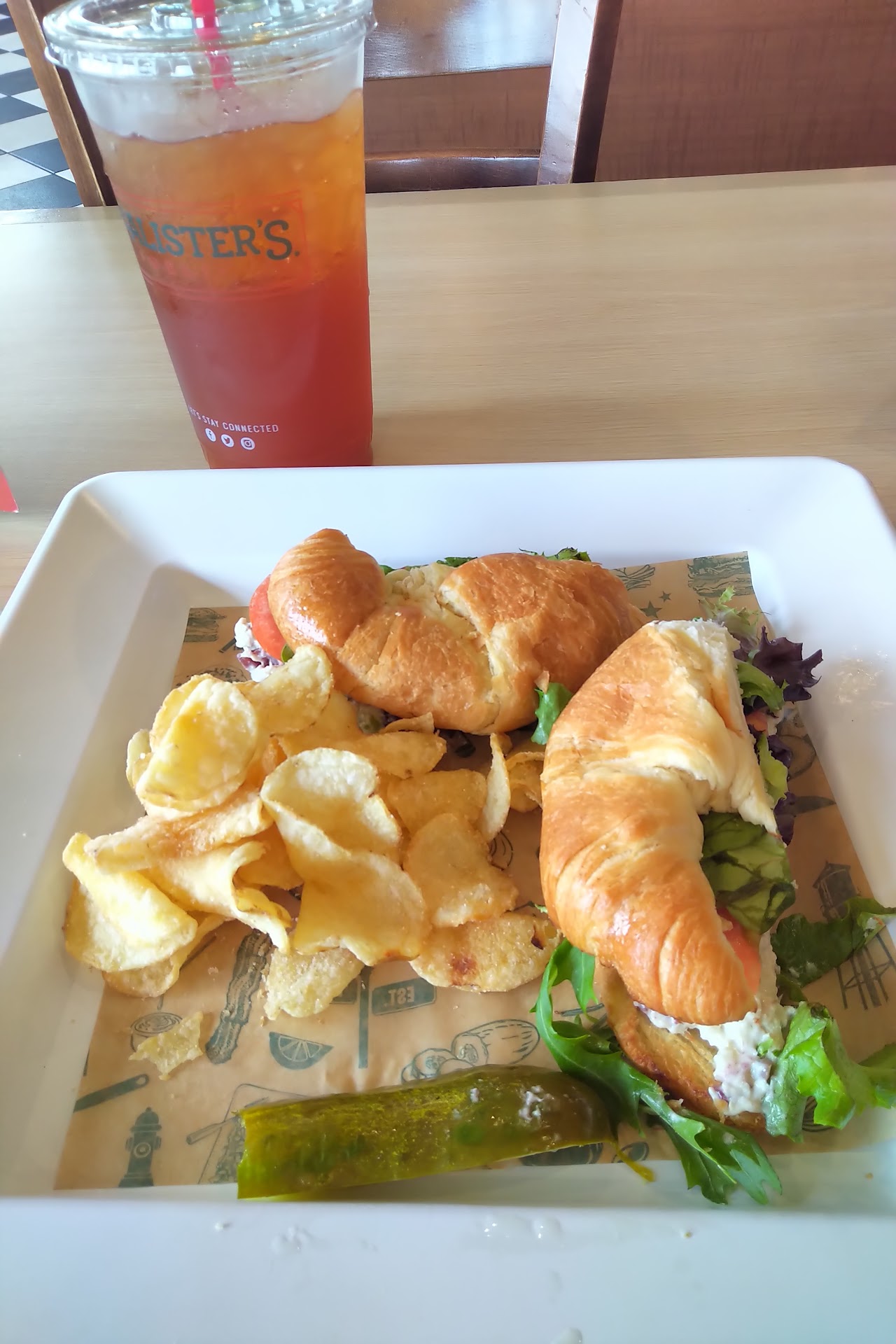 Wow what a difference a location can make! This McAllisters is wonderful! I had a super friendly guy take my order and he gave me solid recommendations on an Italian sandwich and peach flavored sweet tea. I chose to come here because they have tables outside and I could bring my dog. We enjoyed the experience very much. Food was great and we will be back. I think this may be one of the only dog friendly places...
