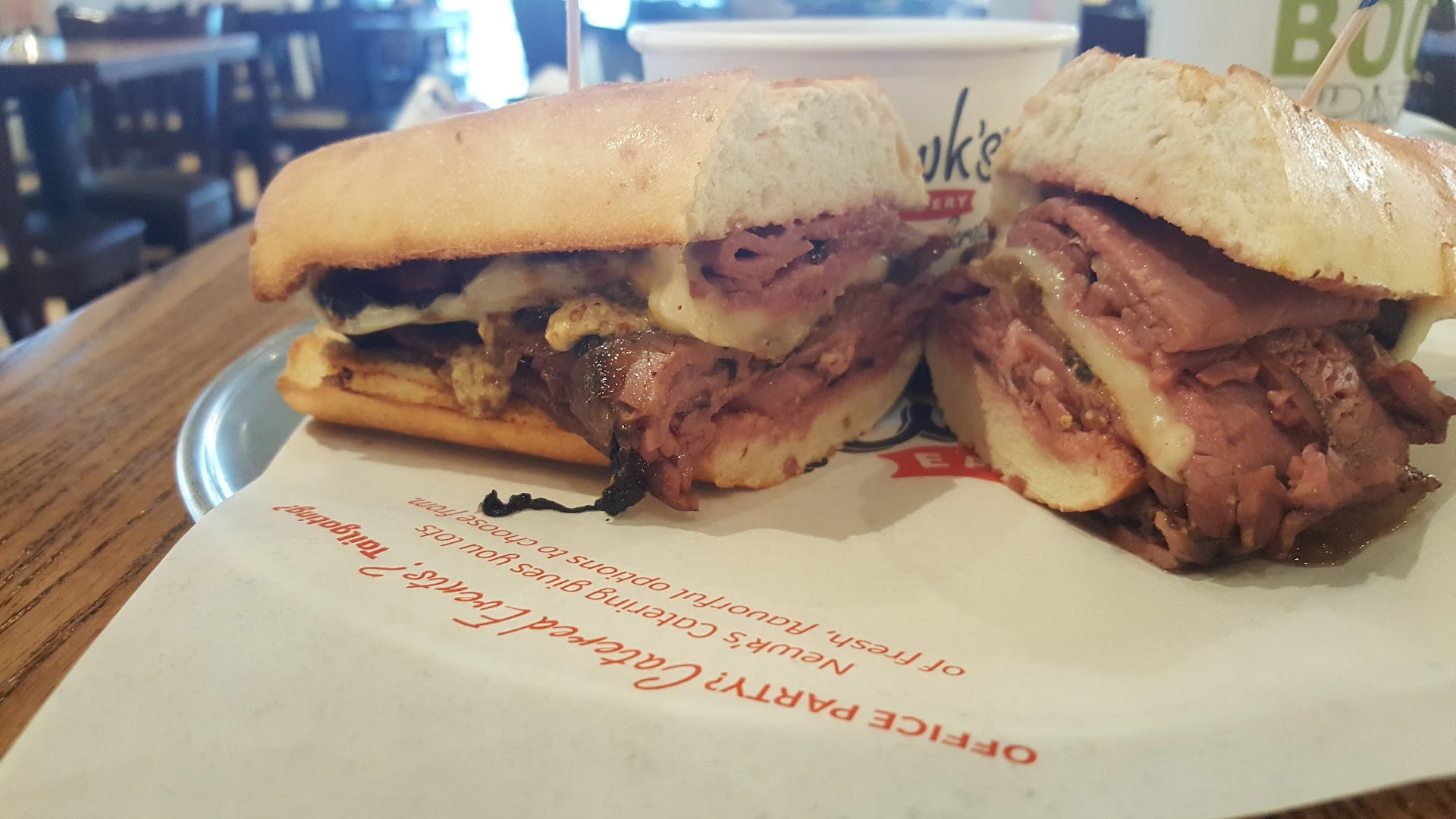 Read moreLet's start with the strawberry cake. It is the best thing they have on the menu. You can tell that the cake and the frosting might be homemade more so than the brownie that we tried. The buttercream frosting was light and fluffy and there were strawberry seeds all through the cake indicating that it's real strawberry in there. For the amount of money that we spent the sandwiches should have been bigger. The meat on both of our sandwiches was rather tough. My husband had the French dip I had the cheese steak sandwich. We pulled several pieces of meat out as we were biting and the meat got caught in our teeth excessively. The potato salad left a lot to be desired. It literally tasted like store-bought mashed potatoes with a sweet relish that was mixed in it. The portion was also quite small. My sandwich was very flavorful but that's about all I can say about it. With the menu also being behind the customer when they step up to the register was a little off-putting. For us this place was a new thing to try so we had no idea what was on the menu and had to keep turning backwards to refer to it. We were not offered a menu to keep in front of us even if there was...
