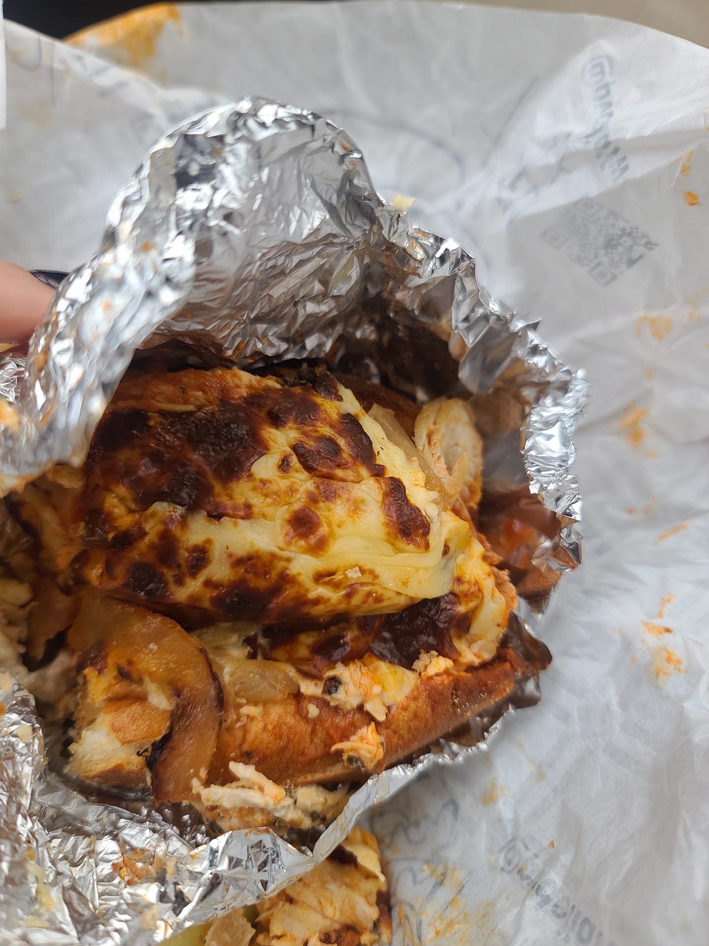 As my sub (chicken, bacon, lettuce, tomato, avocado, pesto, onion) was being finished, they kindly double-checked if I wanted onions. I said yes, and, seeing some tempting pickles, politely asked if I could add one as well. That’s when the tone shifted.