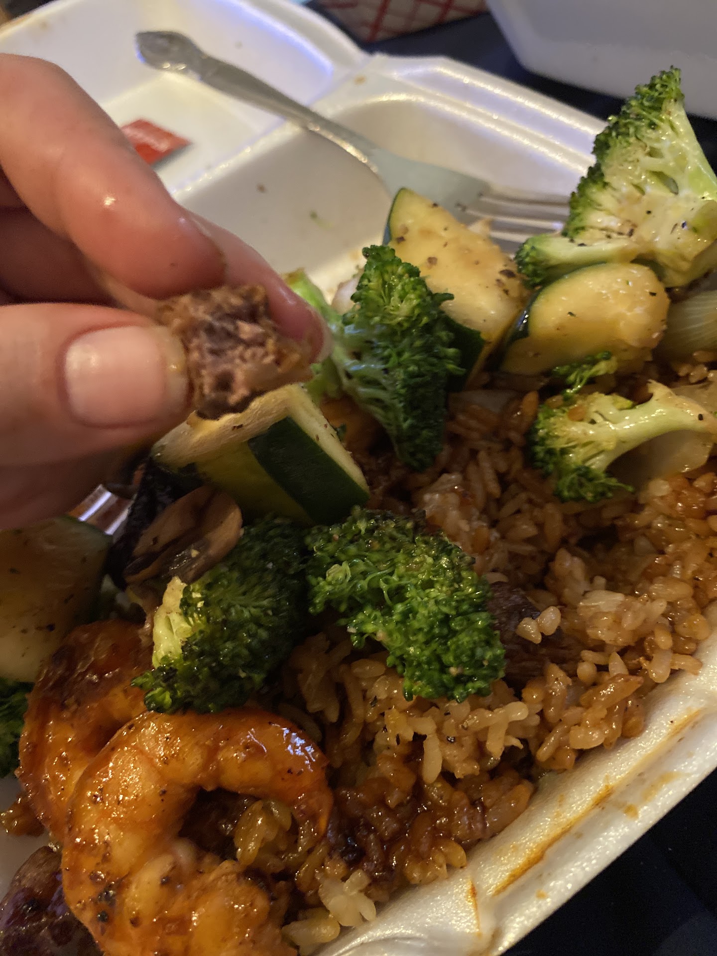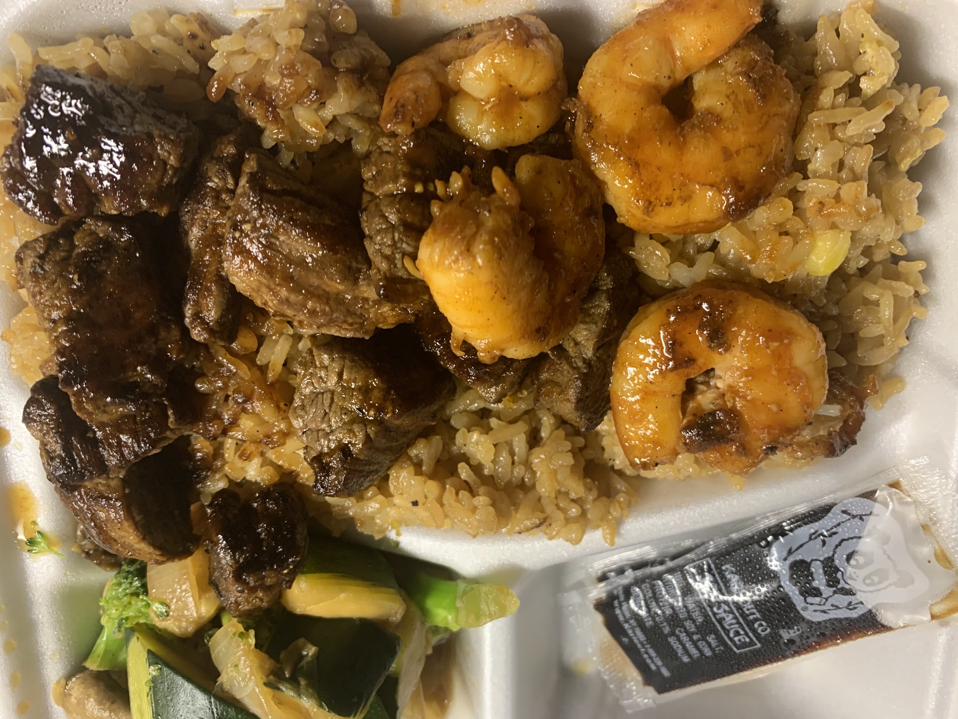 I ordered the steak & shrimp teriyaki meal with added spice. I also added 3 rolls of the jalapeño popper rolls. The steak and shrimp was cooked well and the rice has good flavor. The jalapeño popper rolls were ok. It was a little bit too much cheese for me and the serving size for each roll is very big.