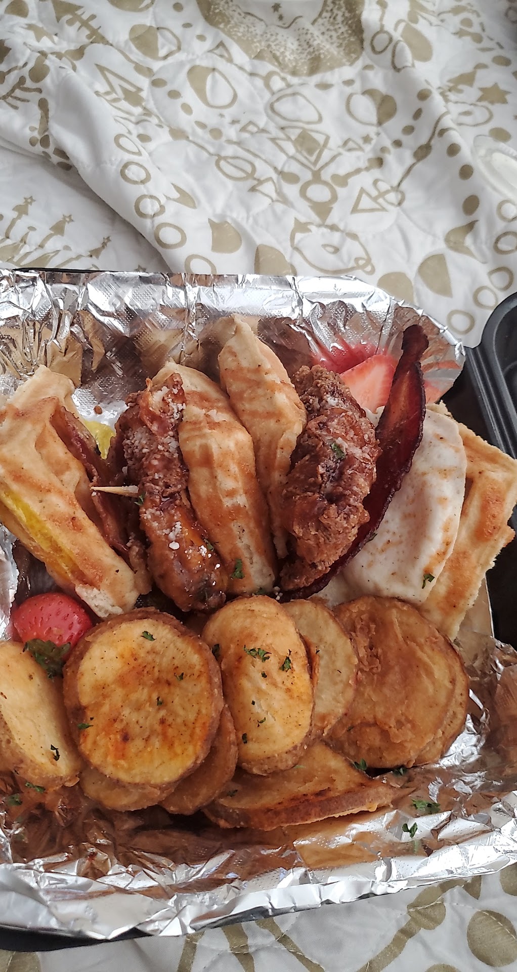 I went to this place based on the reviews and unfortunately I was disappointed. The food was just okay, it wasnāt great. I ordered the fish tacos, the birria tacos, the asada tacos, and the OG (chicken and waffles). I didnāt try the OG but my husband said he enjoyed it; he liked the chicken and said the waffles were also good. I had some of both the birria and the fish tacos. The birria meat was under seasoned and the tacos were on the small side and barely had any cheese. The consommĆ© was delicious though. The fish tacos were the biggest disappointment. They looked nothing like the photo; they were soggy and tiny and there was literally a few straws of slaw on them. The fish was also under seasoned. I ordered a side of mac and cheese and it was the best tasting of everything I tried, but for $4.50 I got just a tiny scoop. Thatās my main complaint about this place: the prices are absolutely outlandish for the portion sizes. Like utterly ridiculous. The asada taco plate was four of the small āstreet tacoā sized tortillas and maybe 4 oz of meat, no toppings, and it was $10.50. I spent $54 plus tip and everyone was still hungry after dinner. I donāt mind spending on takeout, especially on a locally owned business, but I felt like I got robbed here. I wanted to love this place but itās a hard pass for me. Edit to add that the lady at the counter was super nice and helpful...
