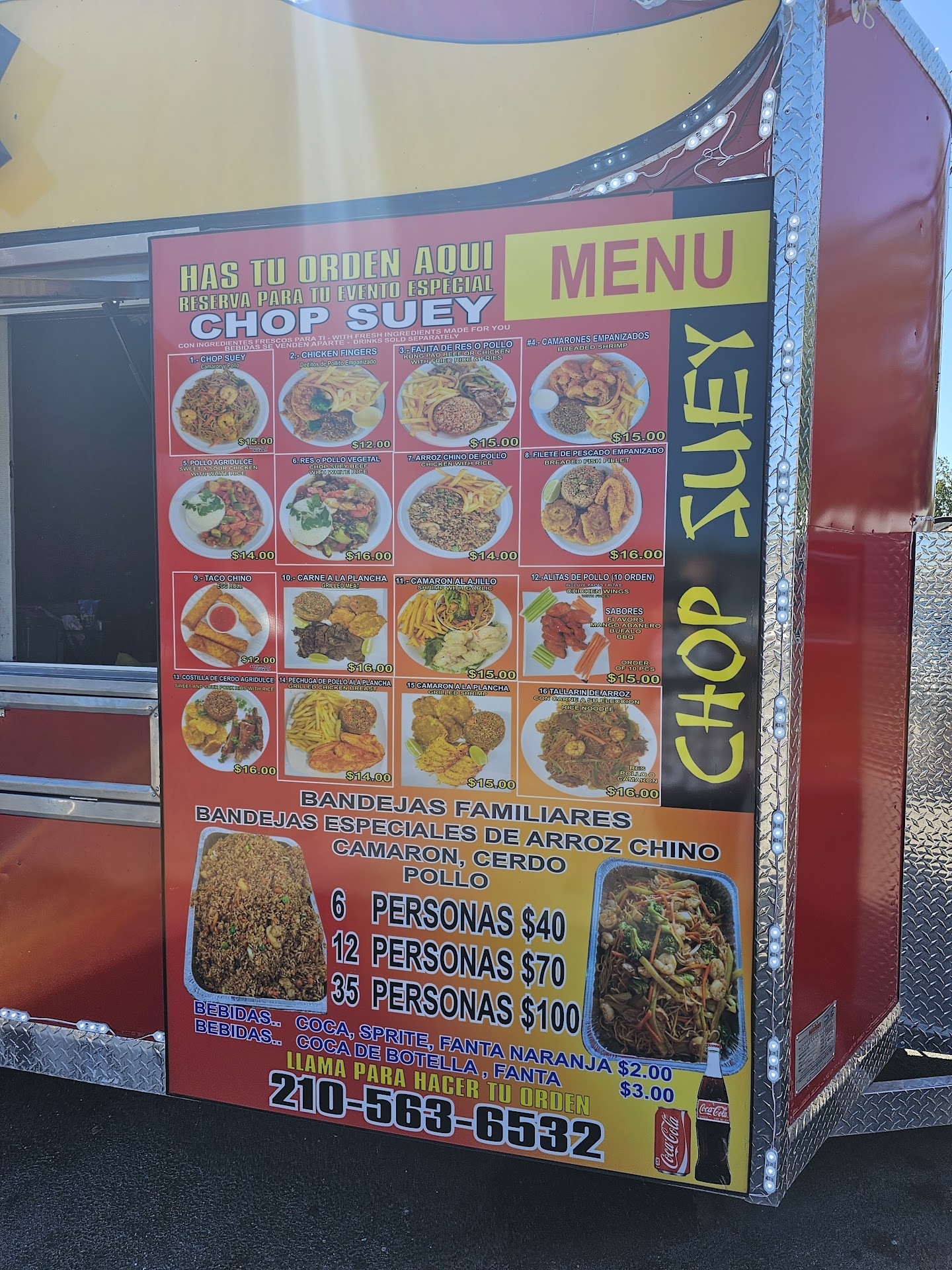 Finally went last night been seeing the food truck for years the food not authentic Chinese food the menu is questionable with items that normally not on Chinese menus except for chop suey and rice. The item I wanted was going to take 30 min to prepare so I ordered the chop suey which took around 10-12 min. The plate was heavy when I got home I was disappointed on the protein very little chicken chunks and about 3 little shrimp. Threw away the plate 1/2 way thru. Take your chances the rice may be better from what a person said in line. Definitely never going again taste was bland and the chicken and shrimp...