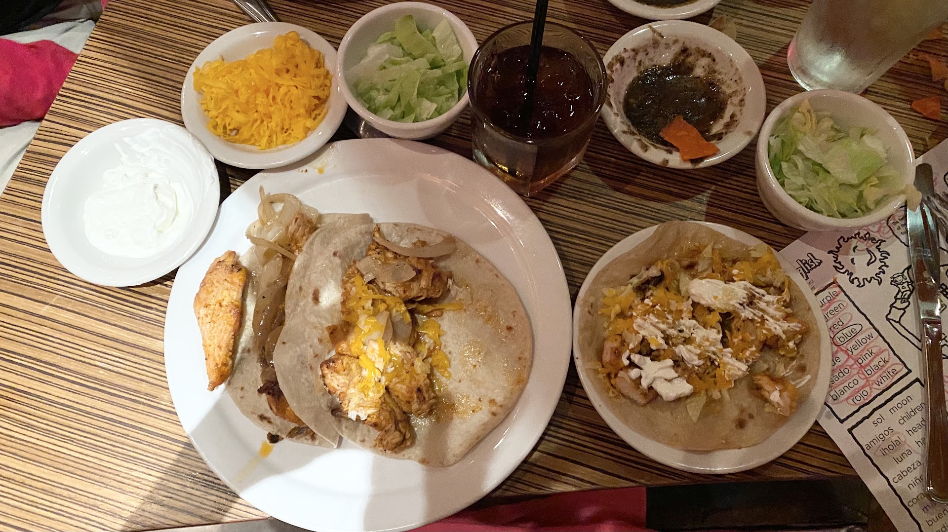 Ā Ā Ā Read moreDonāt eat here! Worst restaurant experience of my life. They brought out the wrong orders to our table. They tried to serve the plate to the left to my daughter and called them chicken fajitas. We told them she ordered a quesadilla. They ended up taking the entire tray back to the kitchen and told us it wasnāt our order they mixed it up in the kitchen. They return and this is what I was served. I told them I ordered 3 tacos with chicken, lettuce, cheese, sour cream, guacamole and a side of rice. They then brought me out small bowls of the toppings I had asked for. (Never any rice) I told them the two on the left are chicken fajitas that they just tried to serve to my daughter. They told me the 3 are all the exact same. I honestly thought it was a joke. Manager Louis told me āI donāt have the holiday spiritā. Iāve never complained before at a restaurant. Iāve also never left a review for a restaurant. This wasnāt even a complaint. It was comical that they tried to convince me the three are all the same and it was intentional for it to be served this way. If they had said we made a mistake I would have said no problem and that would have been the end of it. Manager Louis also told me he could pick the onions off the fajitas and cut up the chicken for me if I wanted. š³š But also reminded me they are all the exact same. Again, I thought this all has to be a joke. Aside from this, the service was horrible and the other food we ordered was not good. This has been our go to restaurant every time we visit San Antonio, never again. Manager Ernest came to us as we walked out and tried to make it right. He even offered us to come back the next day for a free meal and we declined. It wasnāt about a free meal at all. It was about terrible service. The line was crossed when I was told I donāt have the holiday spirit when I was polite and just confused what it was I was being served. Do yourself a favor and eat...