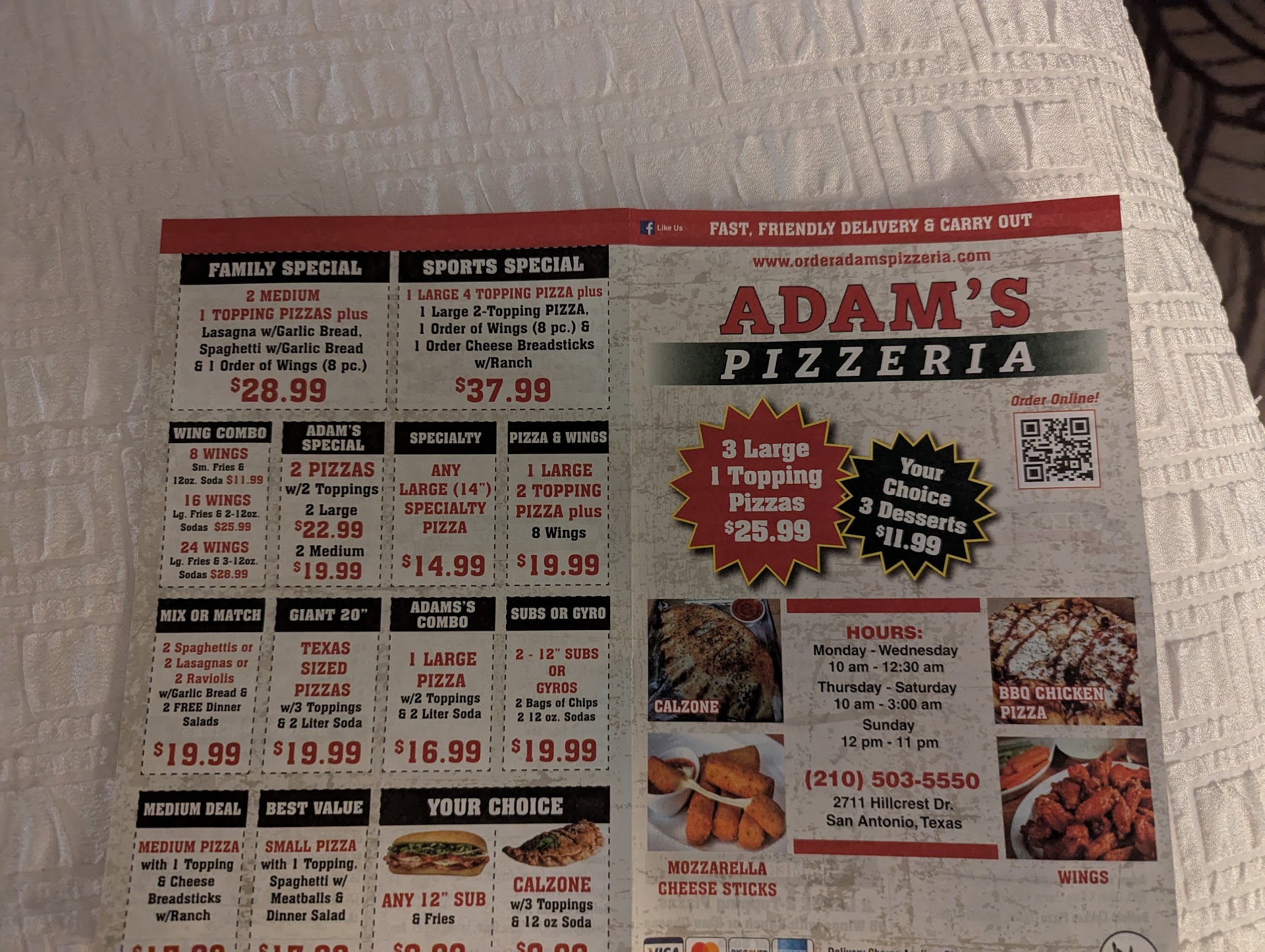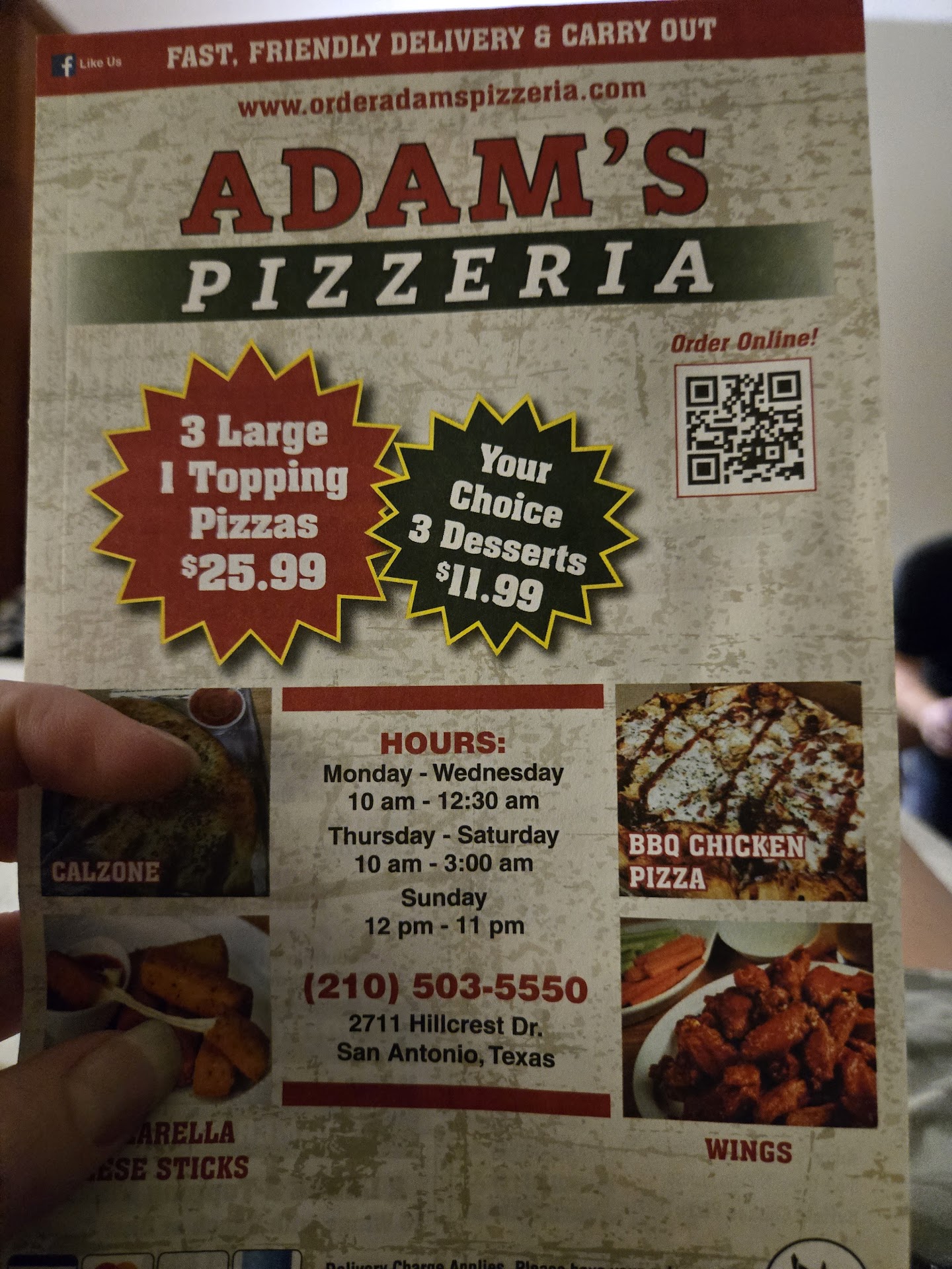 SAVE YOUR MONEY DONT GO HERE. It doesnt give me the option to rate it 0 stars. Ordered take out as we stayed at a nearby hotel and there was a menu that was slid under our door. The name on the menu did not match the name on the building, which was hard to find when picking up the order. We also received another menu under our door with a different name, but again same address before we left. There is something shady about that. With that being said the address of the place is 2711 Hillcrest Dr, San Antonio, TX 78228. We ordered pizza, cheesy garlic bread and a grinder. The pizza was the wrong pizza, the grinder was burnt and the 1/2 of grinder roll for the cheesy garlic bread didn't even have melted cheese. We ordered online through Slice, so when I called the restaurant, whichever name they were operating under at that time, put us on hold for at least 10 minutes to get a manager, we hung up and called back and was put on hold for another 7 minutes, for the manager to answer and say we need to contact Slice and they have to contact the "restaurant" directly. After contacting Slice, they said they had to talk to the owner because they were the only one who could do anything about it. I received and email the next day from Slice, stating the owner will give back $3.70, which was unacceptable to us as we had to order from somewhere else because I was not going to feed my 2 year old any of that, and we ordered a cheeseburger pizza and there was pepperoni which is too spicy for him. We did take a picture of the pile of food we threw into...