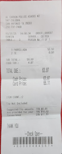 Read moreAs we pulled into the Al Carbon Pollos Asados parking lot, I had a feeling this spot had all the makings of a great chicken spot. It shares parking with a gas station, has maximalist branding with a cartoon chicken holding two big thumbs up, there were no vacant parking spots, the blue sky looked straight out of a Windows background, and the smell of Northern Mexican style marinated fire grilled chicken cooked over charcoal was waging war on my nostrils.