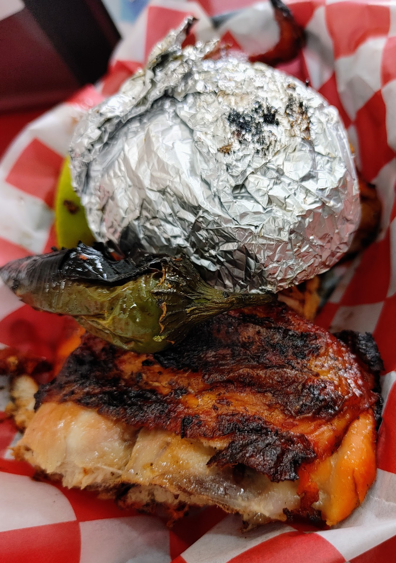 Read moreBal- gah- meh! OMG if I were a chicken this is where I would want to end up! Juicy? Yes. Flavorful? Oh yeah. Messy? You will look like a two year old that just ate a bowl of spaghetti with their hands. And none of us cared. Let this be a no judgment zone. Go at this like you mean it. Dont wear white lol. The grilled onions and grilled jalapeño were just beautiful extras. The service was great (Elsa?) The tea was fresh. And then there is the rice and beans. Listen I would go here just for those. Hands down the best. You have to mix them of course. Beans are a bit spicy, umm. And then the green chili sauce... delectable, FYI they sell it. Tell your chicken friends that you found a place for...