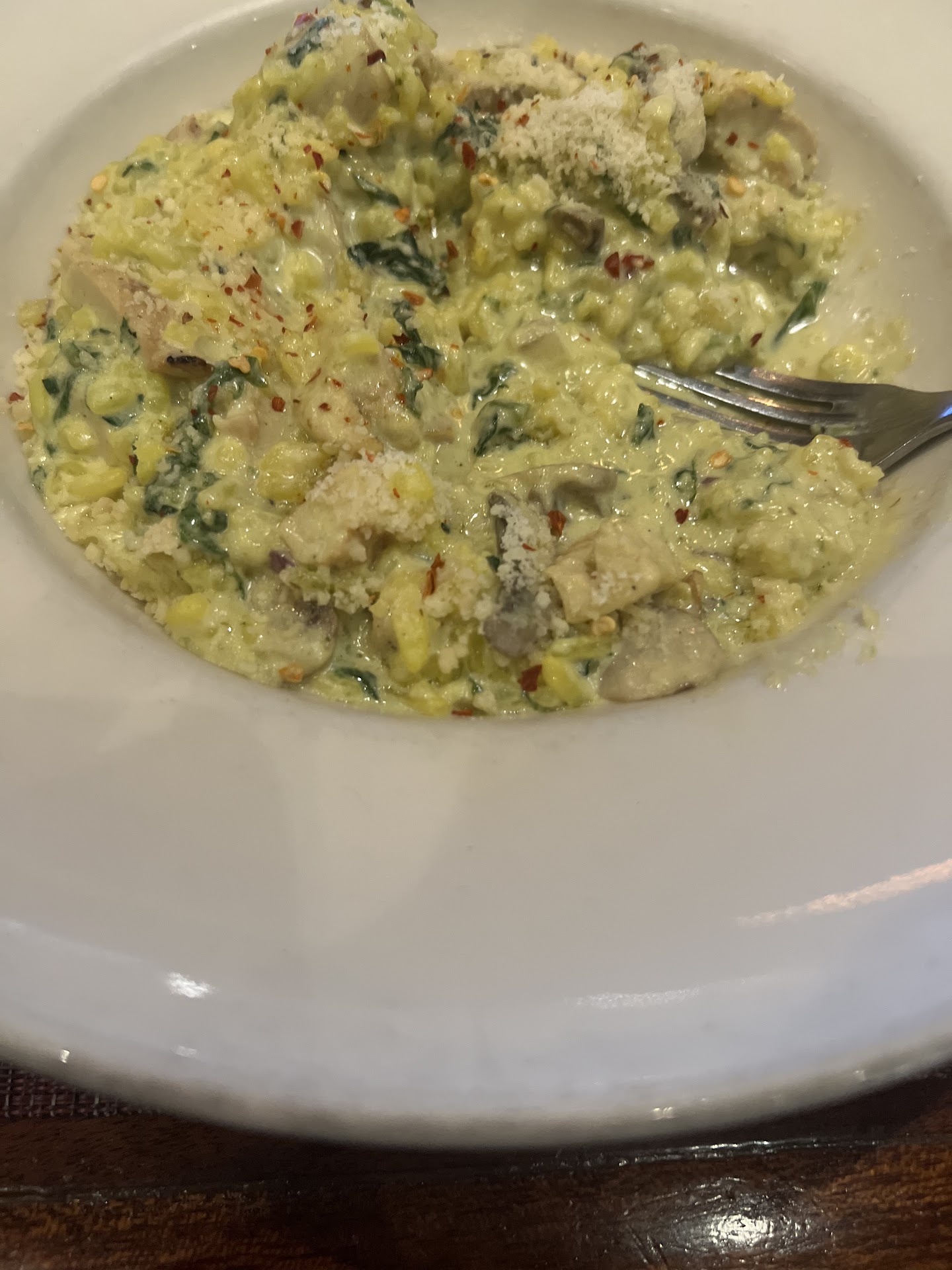 Second the food too keep ot short and sweet its overpriced and sucked my spouse got some sort of angel hair pasta with shrimp and some asparagus now the asparagus was cooked TO PREFECTION and had an amazing crunch and flavor as a baked asparagus should be the rest of was more bland than the entirety of Ohio amd Iowa combined into a salt is spicy dreamscape whete there was basically cooked cream and the la Croix of what was once parmesian and and maybe some garlic that was cooked in the pot 3 washes ago and get this for 35 dollars. You get all that with I wanna say a ladle of food maybe. Enough the average person would look at and say hey that wasnt nearly enough and that wasn't the sole culprit of that particular place either all the main entrees plates there ranged from 20-50 dollars which I understand if it's actually good food example: there's a Thai place off of de Zevala called baanthai Thai cuisine their special is a curry that has everything in and it is AMAZING but is 25 bucks a plate but is a large portion and is actually realllly good and has weirdly good Rangoons? Like seriously good Rangoons you'll have to try them ANYWAY I got myself myself a lobster bisque and just ate the bread (bread was OK did not have the nice crust you'd expect from an Italian place) cause it was 9 bucks to their credit! I did find some lobster pieces at the bottom of the bowl which were about thumb sized which were tasty the bisque itself once again entered into the la Croix of Italian food where some shouted parmesian loudly and repeatedly to a large pot of perfectly good Tamato soup with a cream base which while less terrible than the pasta my spouse ate could honestly be made at home with a can of Campbell's tomato soup some milk some imitation crab and bringing the parmesian dangerously close to the pot to get a wiff of what it could have been.