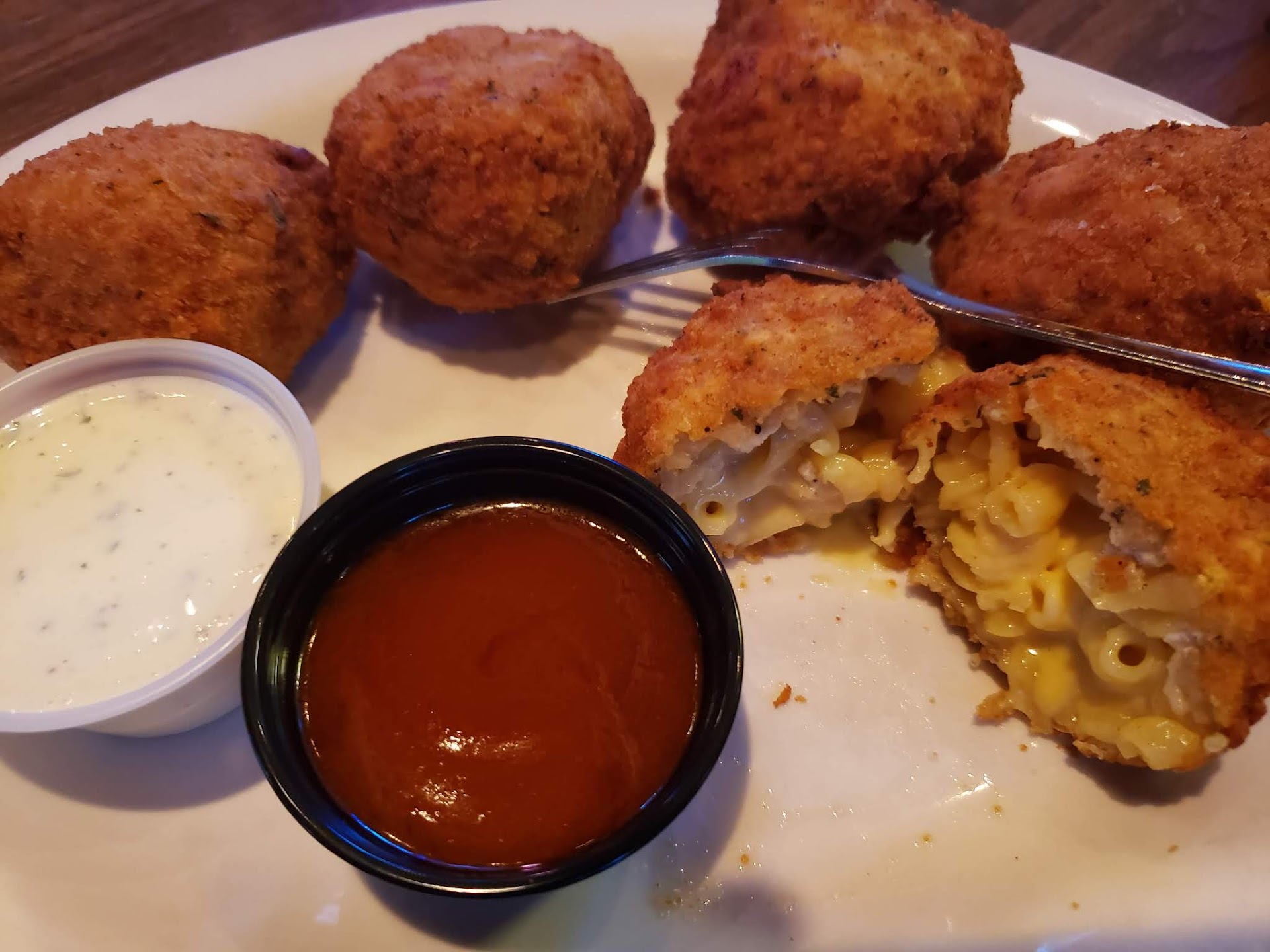 We also had the fried mac n cheese and it was good. Crunchy, ooey, gooey, cheesy goodness served with a side of the honey sriracha wing sauce. The sauce is pretty damned tasty, but if you order this, I don't recommend ordering the Honey Sriracha Wings, because it's going to be too much sweetness by the time you're done with it all.