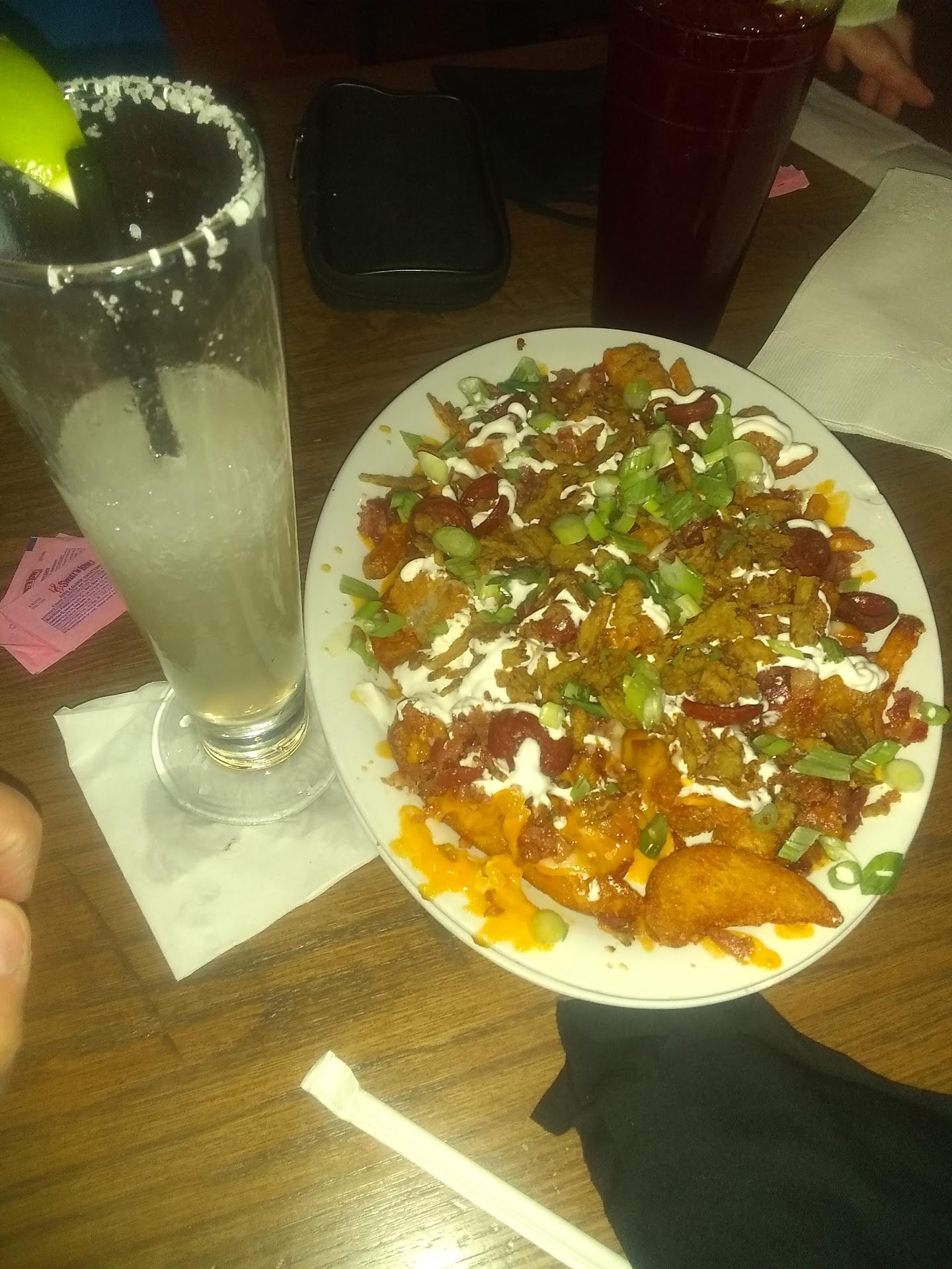 As everyone knows the buffalo wing originated in Buffalo New York at a place called The anchor bar and they have opened up shop here in San Antonio. I'm happy to say it was good. the service started off spotty and then our waitress didn't bring us our drinks for 20 minutes because she simply forgot about us she quickly passed us off to a perky little blond Who provided very good service we left her a $20 tip. With service squared away we ordered the garbage a tois- pronounced GAR-BAH-JJJJ AH TWAH ( you know like the three-way) it was this GUI GUI succulent fantastically HUGE platter of tots, cheese, sour cream, mini pepperoni, and fresh green onions and it was incredibly incredible- until they got cold but we're still devoured fervently!!! The house Margarita with a salted rim goes very well with these loaded little bullets of lucious tots! Be prepared as you have to order snack single double and there's a larger size but its name escapes me- anyway, for $24 we got the double size which afforded us four different sauces we got golden jerk, spicy BBQ, lemon pepper, and honey Sriracha. The golden jerk tasted like honey mustard, the spicy BBQ was not spicy at all, the honey Sriracha tasted more of honey than Sriracha, BUT THE LEMON PEPPER WERE THE FLAVOR DREAMS ARE MADE OF. I'm a little sad to report that the wings were just ok. Nothing special. This place has been made out to be "where the gods go to get their wings". FALSE. Sadly it's JUST AVERAGE. It's just OK. If I were close to a Wing Daddy's, I'd go there. I mean, you could get the same flavor hit from Domino's and Papa John's Wings if you want wings it's not a necessity to go to anchor bar. The platter of wings came with a scant amount of celery and carrots and they had blue cheese as well as ranch dipping sauce. The platter so came with a wooden salad bowl for your bones but that's about all that set it apart. I wish I could say that if you skipped Anchor Bar you would be missing something but you're not missing anything. The music was way too loud and an inattentive waitress who passes you to someone else and when they make your Margarita you can hear it throughout the restaurant and you definitely know that they're making your Margarita even though the restaurant was pretty full when we went. It's just average. if you're craving wings and in the area sure to stop by. you can get what every other wing joint has...