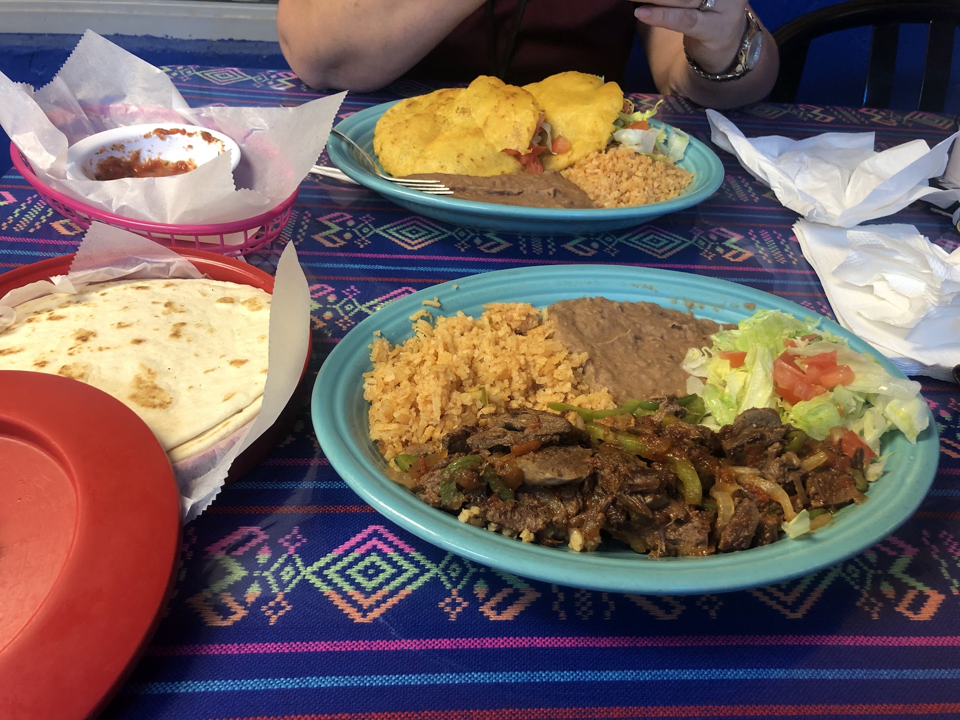 So we had just finished watching our grandson play soccer right down the street at the Community Center and saw this small quaint restaurant just calling our names! (Mainly Mine to be Honest); well, we pull in to this joint and itâs empty but we quickly get Great Customer Service; we Notice that the place is very Nicely Decorated with colorful vibes, tables cloths, and old family pics; and Great Signs âYou Had Me at Tacosâ! Well, the Food Options, Large Portions, and actual Quality/ Taste of the Food did not disappoint! I had Lengua guisada in some really nice Mexican sauce making my meat super tender; for my Wife, she had the Gorditas plate and they even gave her the option of making one chicken and the other beef without any extra cost (very accommodating with requests)!