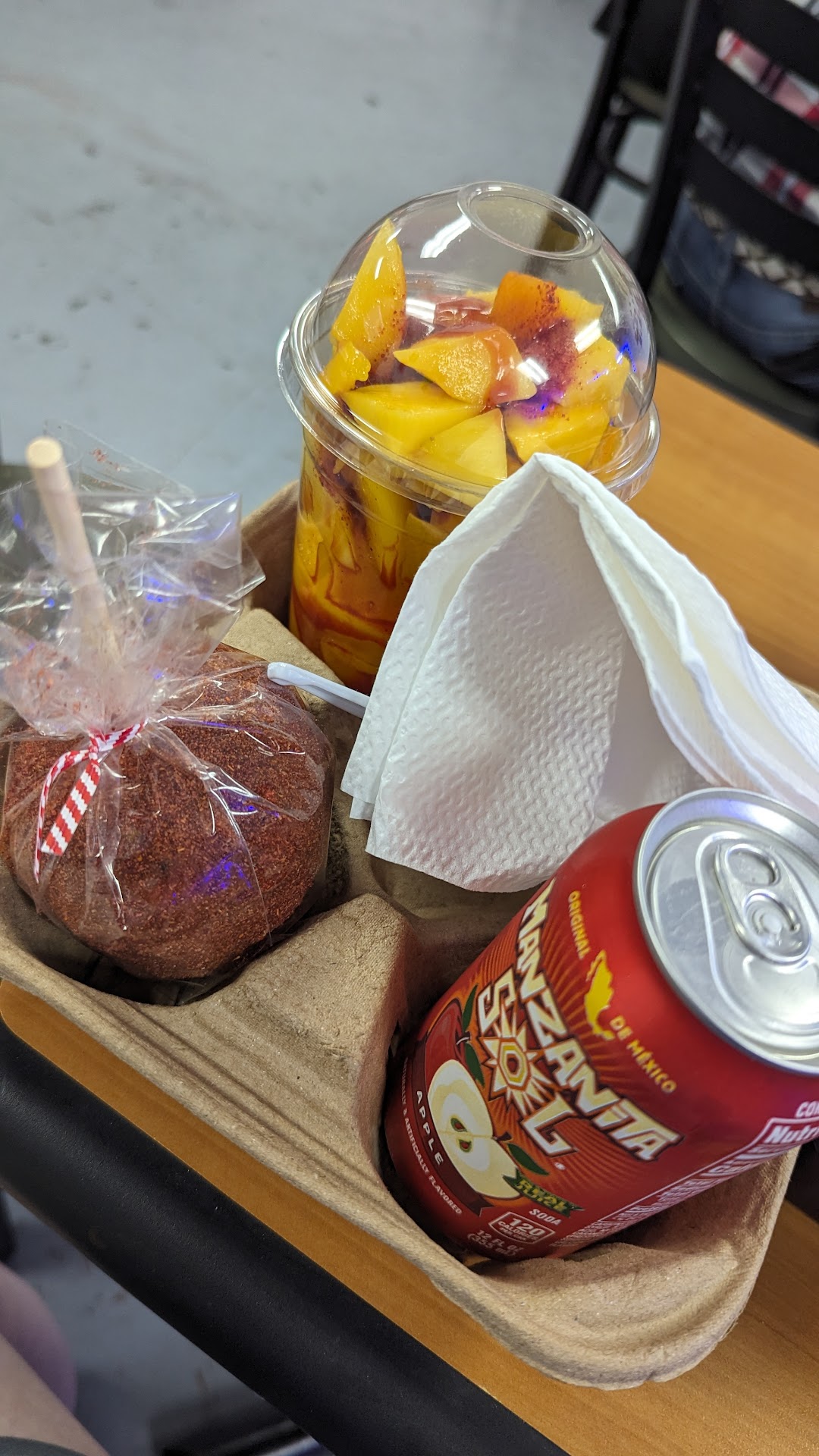Cute little family spot for snacks! The employees were very friendly and asked clarifying questions about my order to ensure they got it just right! Prices are fair and quality is great! The mango fruit cup is coated perfectly with chamoy and the fruit was perfectly sweet and ready! The quality of the mango was steady throughout the cup! If you're in the area, make a quick stop to check it out! I only waited maybe 3 minutes...