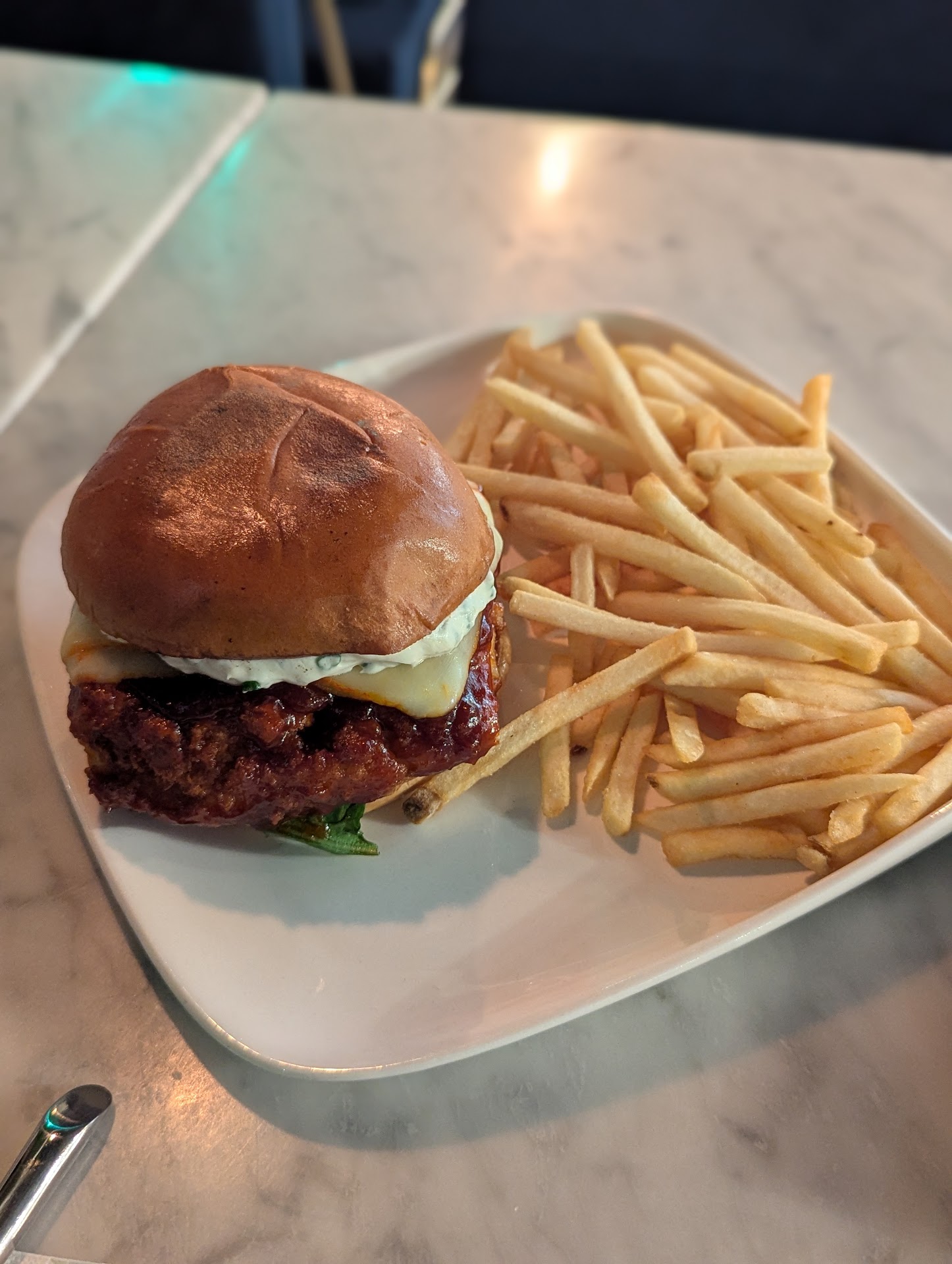 Critique: Very minor suggestions for the future. First- it would be nice to see a few more fresh/veggie dish options to balance out the rich and indulgent options that make up most of the menu. Second- Don't get me wrong, I did like the fries. But I do want to suggest maybe doing a thicker cut fry and maybe using a couple extra steps to ensure they are extra crispy, following the trend of "pomme frites" being an elevated French fry, rather than an after thought. This would be a great improvement, especially since they feature "truffle fries" on their menu.