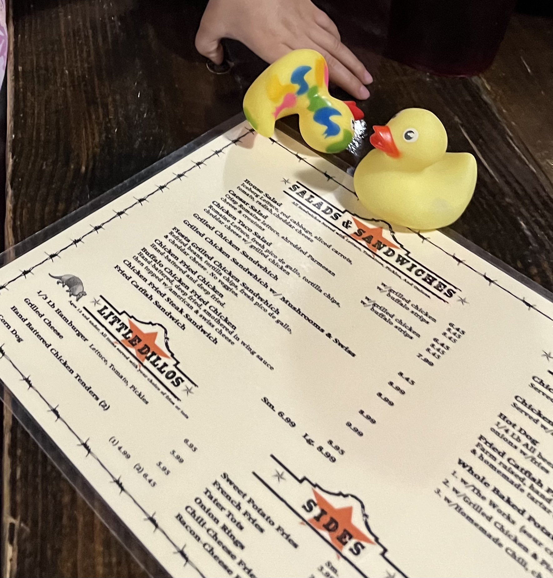This place has so much potential given the location and bar, but they would be better off completely revamping the menu or discontinuing selling of their food. I used to love the armadillos at the downtown location, but like this one, the food quality has changed for the worst. I went again today, desperate to find something I can like in the menu, but even things that are hard to mess up tasted below average (tots, salad, āchicken wings,ā and chicken tenders). Some individual item assessments: