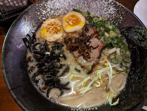 Read moreThe restaurant opened recently in our neighborhood, and was in direct competition with our favorite ramen place, just across the highway, Hoka Hoka Fuku, so we had to try it. My wife and I both had ramen, she had the Chicken Gyoza and me, the Spicy Miso. The broth was very umami, almost sweet, as a well made chicken-based broth should be, I like the dashi taste (made with Bonito flakes) of Hoka Hoka Fuku better but my wife thinks it's just a different style. However, Bakudan is the champion of noodles, the home made noodles had that exquisite and unmistakable slight chewiness and slight taste of wheat that only freshly made, never dried noodles can have. Add to that the unique mango flavored sake, the frankly better made shirashu eggs and chashu pork, and Bakudan wins in overall ramen experience. Hoka Hoka Fuku takes it back by its variety of other Japanese entrees, though, however I'll have to come back and try Bakudan's bibimbap, a Korean specialty but a favorite if mine. The atmosphere and decoration is very japanese, a draw with across the street, and the service is good at both places with a slight edge at Hoka Hoka Fuku, but Bakudan is new and will improve. Conclusion? Both are great places, we are so lucky to have both in the neighborhood, and we'll come back to both. You should also try both and feel the difference, you will enjoy...
