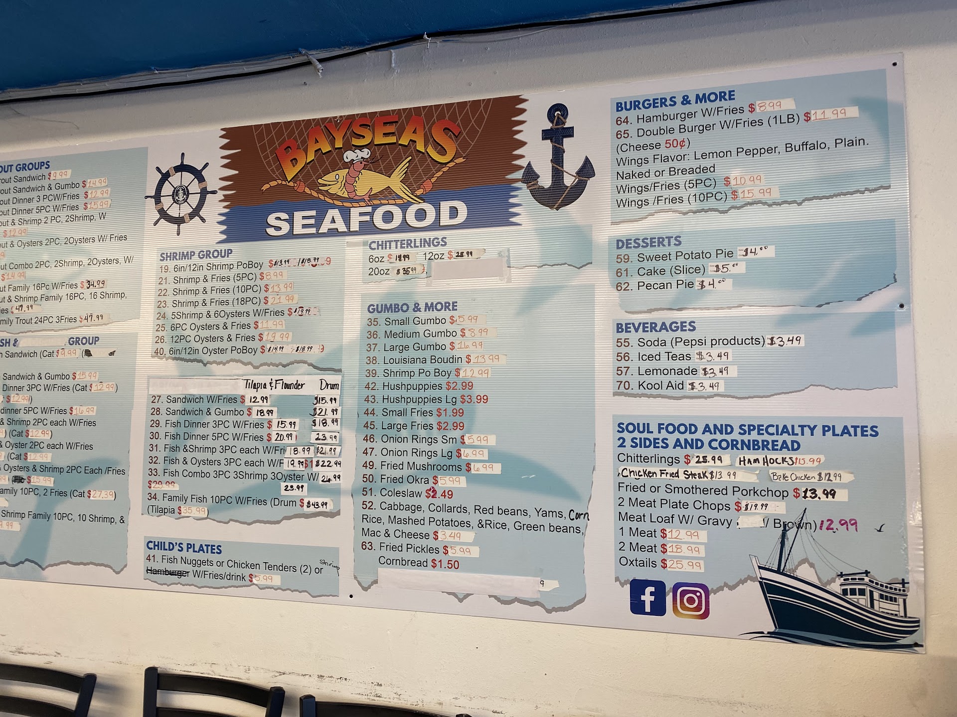 I moved away for 18 years and when I moved back this place had changed. I have gone back four times after my original disappointing purchase since I have moved back three years ago. The sides are tasteless, the seasons for the fish is as well.