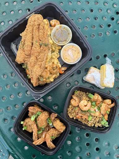 I ordered off the Main Flavors menu because I was sharing with a friend and the portion was definitely enough for 2 people to share. We chose the Voodoo Mac & cheese for our side and it also came with 6 fried shrimp coated in tasty sweet Henny sauce that is so unique to this food truck! My big back couldn't resist the urge to order the seafood dirty rice, so I did and I regret nothing. Everything is seasoned so well, the fish was nice and crispy on the outside and juicy on the inside, the quality of the seafood they are cooking up is perfection! Whoever their supplier is, they should keep them around for sure.