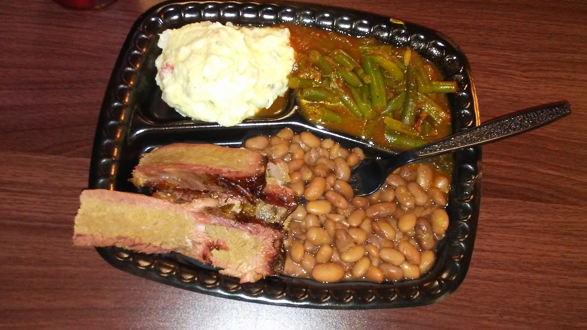 On 2/12/23 I went and order through drive thru, a rib and brisket plate, 3 sides, a sausage link apple pie slice and drink.