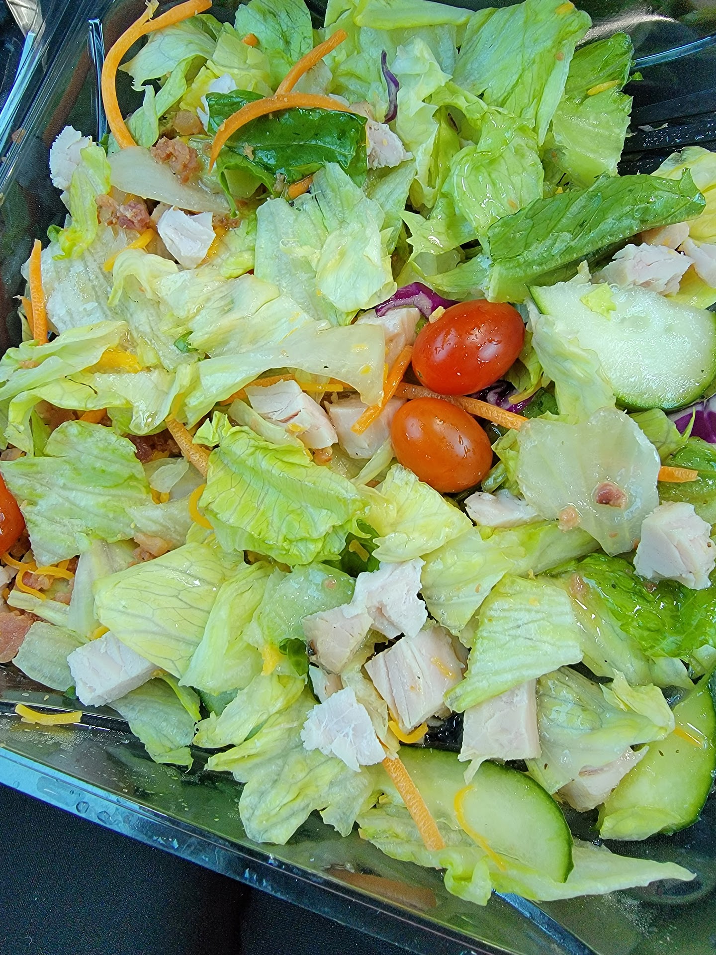 Read moreThe age old question "what can I get started for you?" Me: a #6 with turkey, itialan dressing and a sweet tea, please. I absolutely love Bill Miller salads. Go ahead and fight me and tell me no, there are better salads out there. I love the combination of lettuce, tomatoes, cucumbers, carrots, bacon and cheese. It's in a fitting container and it is always a nice cool meal to enjoy on a hot sunny day! Now I have watch the price increase on the salad and I am still very faithful on paying for it. Recently, the price went up and is now $9 almost $10.00 for thr combo. I didn't mind, but what I do mind is how much smaller the salads are getting and less fresh. I like salads to have lots of color! Bright leafy greens and crisp cucumbers. All I'm getting now is less green, the white of the lettuce and soggy cucumbers. Yes, I know it's a bbq place. They specialize in brisket, sausage, fried chicken and fattening gravy/bbq sauce. Which I don't care for. But for the tiny percent of people who do eat salads from here, going a little extra on the greens means a lot to us. It's the little things. Who wants to eat a soggy, all lettuce hearts salad?? I will continue to order my salad and enjoy my tea...