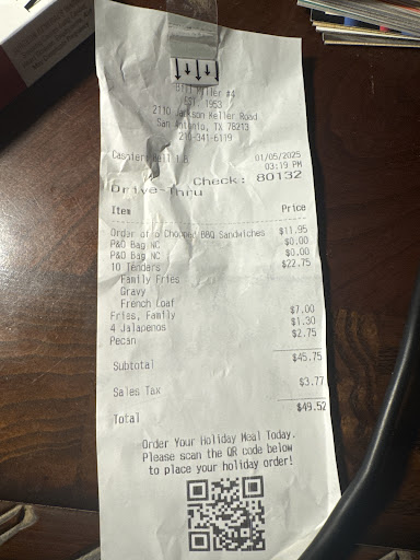 Read moreThis place ALWAYS gets my order wrong! You can ask for lean brisket and even read it on your receipt, but 9 out of 10 times you will get punked. (when the screen worked, you could see it on the SCREEN!) The only thing they don't mess up is the tea! Constant complaints to the store and to the corporate, and nada has changed. It really SUCKS that they are the closest one by where I live because I literally have to go 3 times the distance out of my way to get the order to be CORRECT. How sad is it, I have to go ALL the way to another Bill Miller to get a mere taco with what I ask for. I suggest going to the location off of McCullough because they actually get the orders right the first time. I will just put it simply as this: you don't want to gamble with your food on whether you get what you ask for, check your food before you leave! This completely goes against the purpose of a drive thru! Otherwise be ready for something to be wrong, subpar or messed up (I've had a bean and cheese that had 90% of the beans on the foil, I don't know how that even happens!). My family and I even went one time and they just threw the rolls in that paper bag, no cover, nothing! Just rolling around like it was a ketchup packet. How lazy is that! The staff is nice (for the most part), and the atmosphere is okay (this based on eating inside) but the managers rarely seem to care that you HAVE to get off, spend time in line and explain to them (while you show them your receipt) that the food is not what you asked for. Most often, they don't seem to care, you had to drive back home, because you didn't check your order from leaving the drive-thru. Again, getting TEA is not too difficult, and they do have some decent tea. But the brisket is always off, where you get gobs of gristle when you ask for lean. Maybe one day... one day they will get it right. I've been telling myself this for over 5 years already! Come on Bill Miller, get it together! Welp, guess I better write corporate again, for the same issue they SAY will improve. *Update - I actually went today and asked for Extra Lean meat and the pic is the taco that I received. Tons of gristle and not...