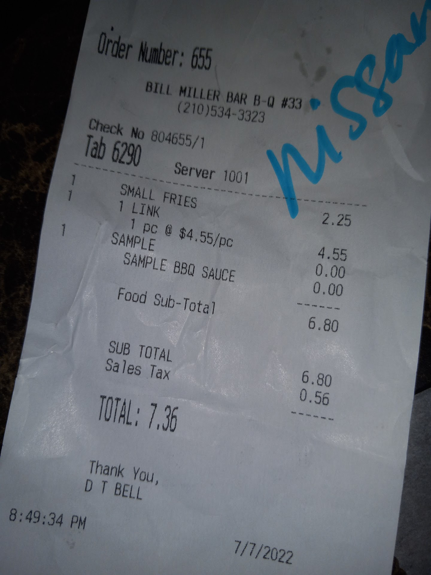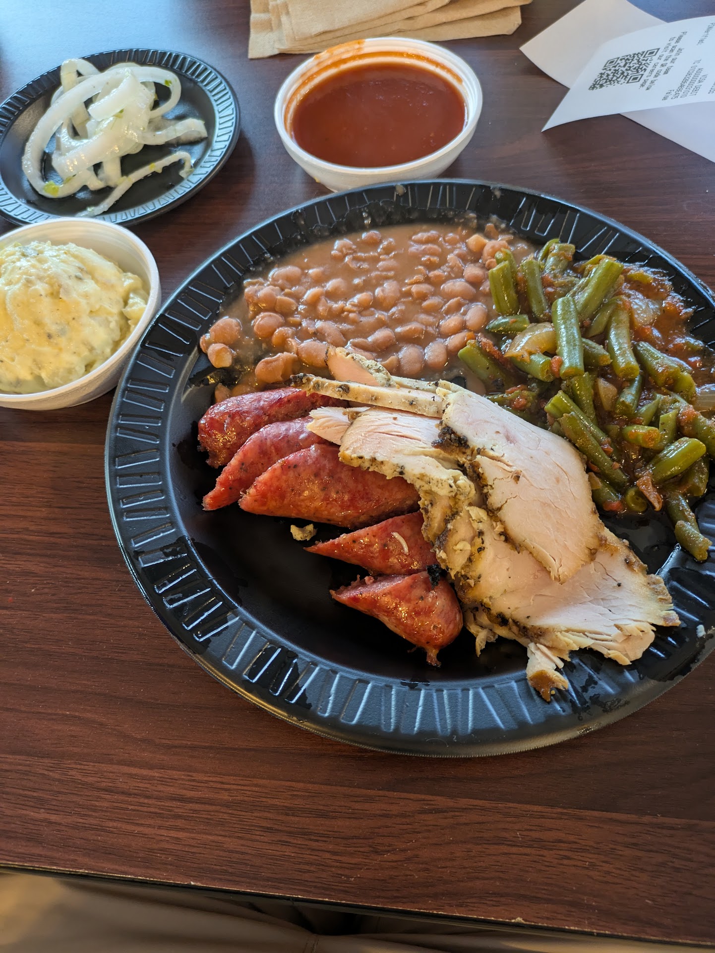 We get some chopped brisket sandwiches and fries. The rolls are stale, the brisket is at least 40% grease, and I've never seen fries so soggy...but it's $7 for two sandwiches, it's about what I paid for. So why one star?