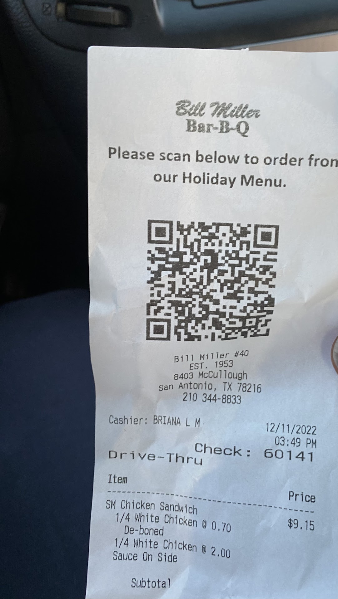 Read moreWon't be returning here. Went through the drive thru and order the #4. The lady asked if I wanted small or medium fries. In all my years of coming to Bill Miller, they have never had size options. I said medium, thinking that was the normal size. The prices listed on the menu were $6 and change and $8 and change. When I got to the window, the price was $10.10 before tax. I asked why, and it was $1.75 for the upsize in fries. I asked when they started having different sizes and she said it has always been like that. That is a flat-out lie. I used to work for Bill Miller and this is the first time in my life I have been offered sizes. Even when ordering online there are no options for different sizes. I asked her what size the meal normally came with before and she said medium, so I asked why the upcharge if that's what it always came with. She said "because you ordered medium". I told her that she just said that is what is usually comes with, then she back-pedalled. I said nevermind, it is already done, and got my food. The fries were semi-warm and not extra crispy like requested. The chicken strips were barely room temperature. I used to love Bill...