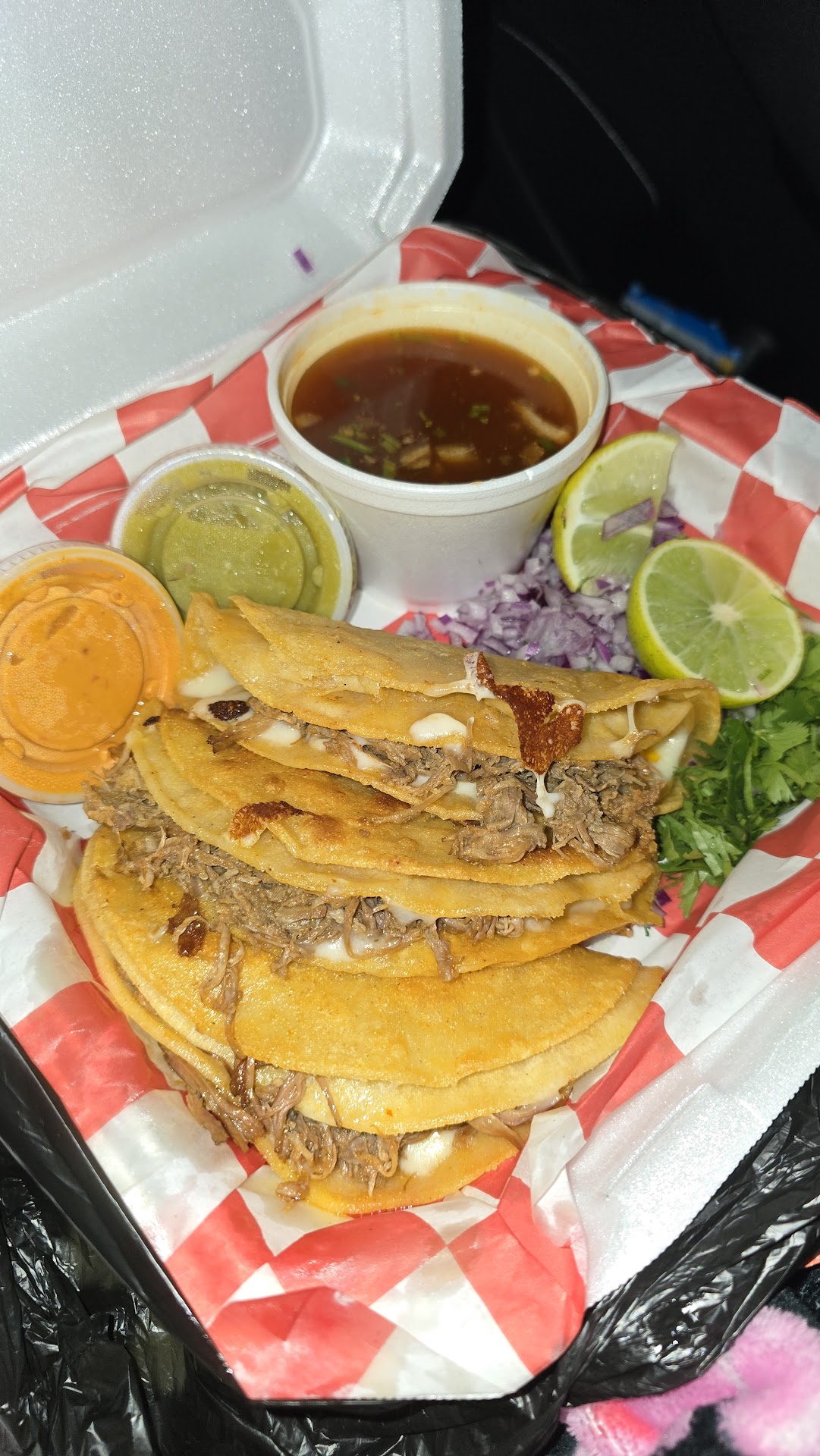 Read moreI’m am soo glad this place opened, and is a 5 minute drive to get to from my location. They have hours that I have not been able to get used to especially when I’m having cravings. The food is delicious 🤤. I’ve tried so much from here. I absolutely love the birria they make here, unfortunately you can’t order it on its own. It has to be ordered in the entrees. I’ve tried the birria tacos, birria ramen, birria mac n cheese, frijoles charros, and the mini tacos. The area is has plenty of outdoor seating, and now some indoor seating. They play great music, and are always busy. They sometimes have a long line for ordering, but always seems like I’ve got my food within reasonable time. They have a few beverage options, but the Fanta 🧡 is always my go too. They have a margarita special as I’ve seen advertised, but haven’t personally tried them or asked for one.