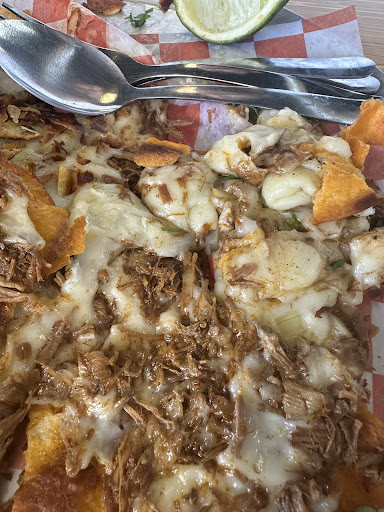 Read moreFirst off, the cashier is very sweet and nice and helpful with information. Staff hard workers, but I didn't see any waitress make rounds to check if we needed anything (lack of attentiveness). You have to either get up or catch someone's attention. I had the #1, which is a 3 quesadilla birria hard shell taco with small consome and a drink. Also ordered a side chicharrón soft taco. Let me start with size. All the tacos tortillas are bigger than the store bought tortillas. These are homemade, large, thin serving. The soft taco de chicharrón prensado is a bit salty but good flavor, but for the serving size compared to the tortilla, I had to remove some tortilla off. Now the birria tacos....very hard shell not crispy but tough hard shell, very oily that is what turned me off even when adding the trimmings of cilantro, onions and limes, out of 3, I only ate one. The consome also had a very thick layer of oil, and I had to spoon out the oil to get a taste of the broth. Which hands down it was good. The vibe is for someone going through a heartbreak. Go with an open mind, but it...