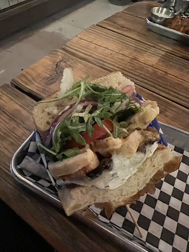 Came here with a friend for dinner and drinks. We brought our dogs with us and sat outside. Their ordering is convenient for those that come alone with pups, as you order through a QR code attached to the table. I ordered the Grape hard Soda and the chicken sandwich. The drinks came out fast, but barely any interaction with the staff - they acknowledged we had our dogs but we had to ask for water for them and the waiter seemed puzzled why we would ask. After a bit we got our food, came out looking good, but again the waiter - didn’t bring any napkins over and my friend ordered wings. We had to wait until we saw someone - flag them down and ask for napkins. My friend liked her wings, my sandwich was pretty good the chicken was beyond dry though. We ordered one more drink each, ciders, hers came out and the waitress asked if we needed anything else and I was like yeah I ordered a cider at the same time she did roughly five minutes ago and haven’t gotten it. She looked puzzled and confused, walked off. And took another five minutes to get my cider. At the end of the night for one person who ordered a grape hard soda and cider and the chicken sandwich was almost $40 bucks. The drinks were good but the food left some to be desired. And the wait staff - definitely needs improvements. The parking lot is small and fills up fast so get there early and take a smaller vehicle...