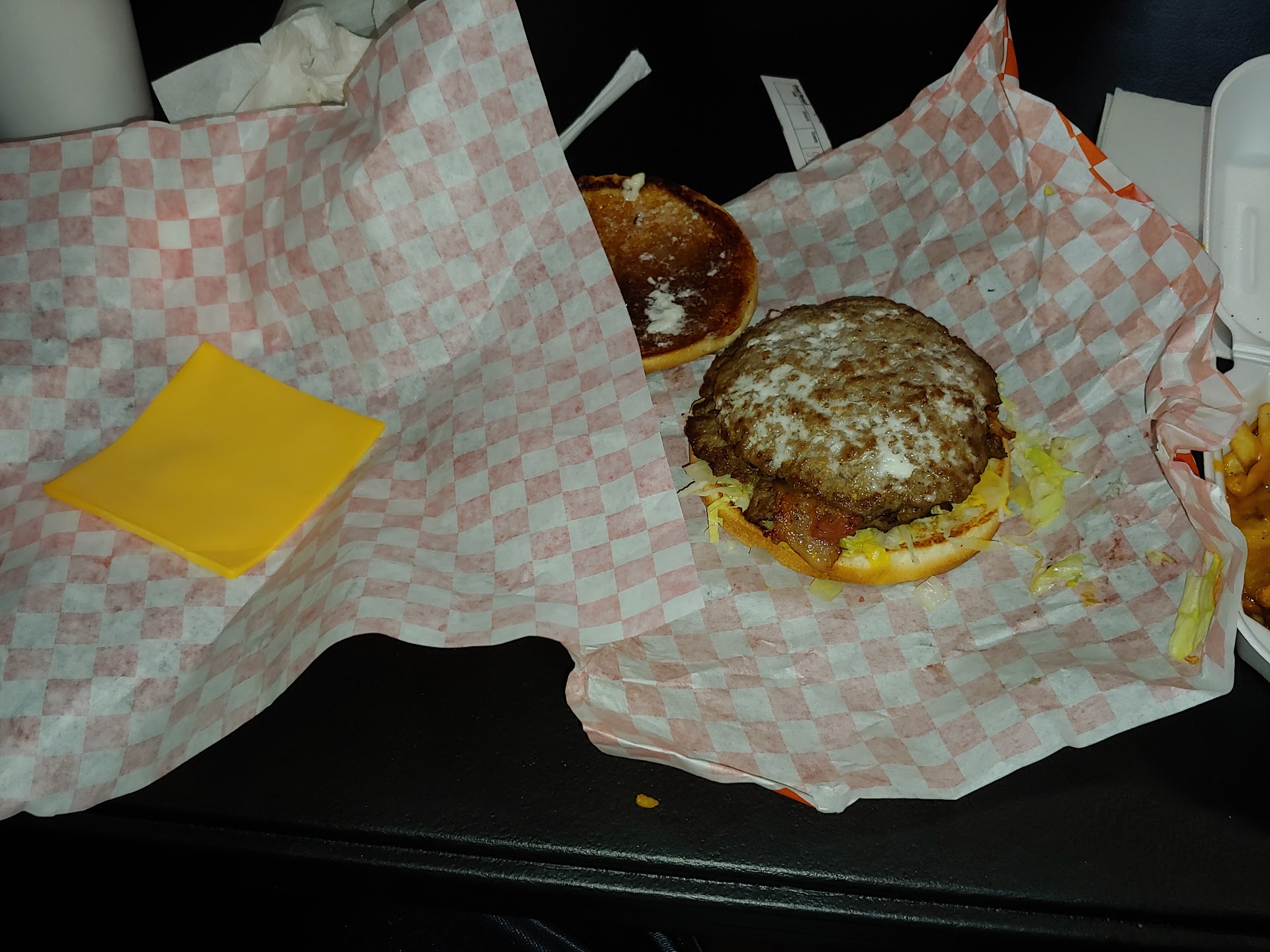 To be honest, I felt the burger was comparable to What-a-Burger. I got the Special burger, which is essentially the What-a-Burger jalapeno & cheese burger. Yes, the bun was toasted, but that's not a big deal for me. The taste was fine, but nothing special. Spices might have helped.