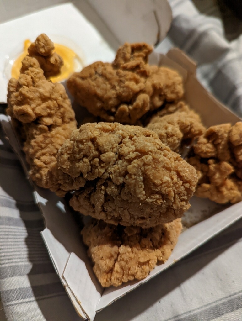Red flag#6: Lack of quality. All it took was for a server to stroll down the aisle with a tray full of food to see that the wings looked dry, small, and not very appetizing.