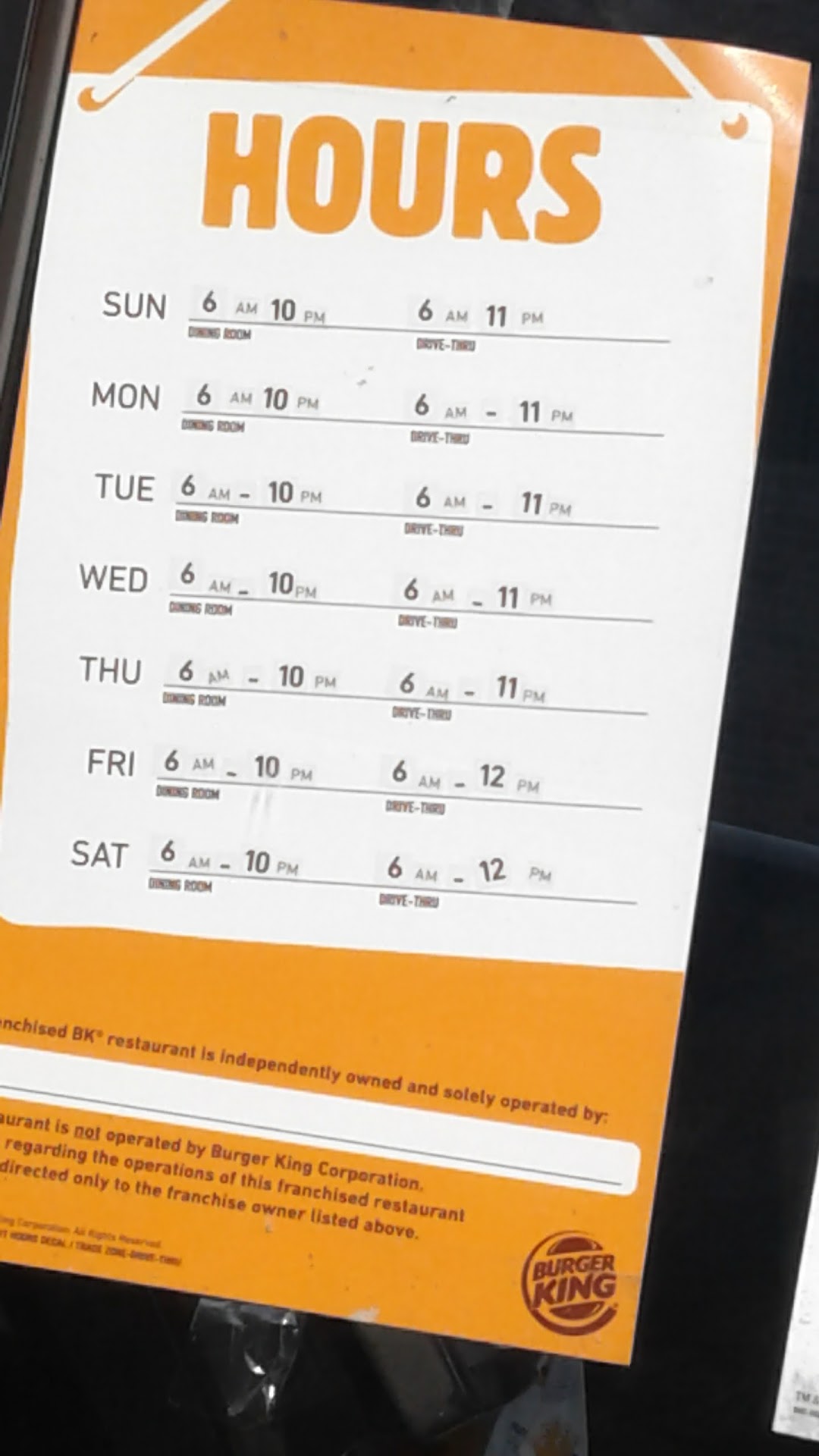 Absolutely hands down the worst Burger King I have ever been to anywhere. Over the last 5 years since renting a business location near this restaurant I have had repeated issues with the location.