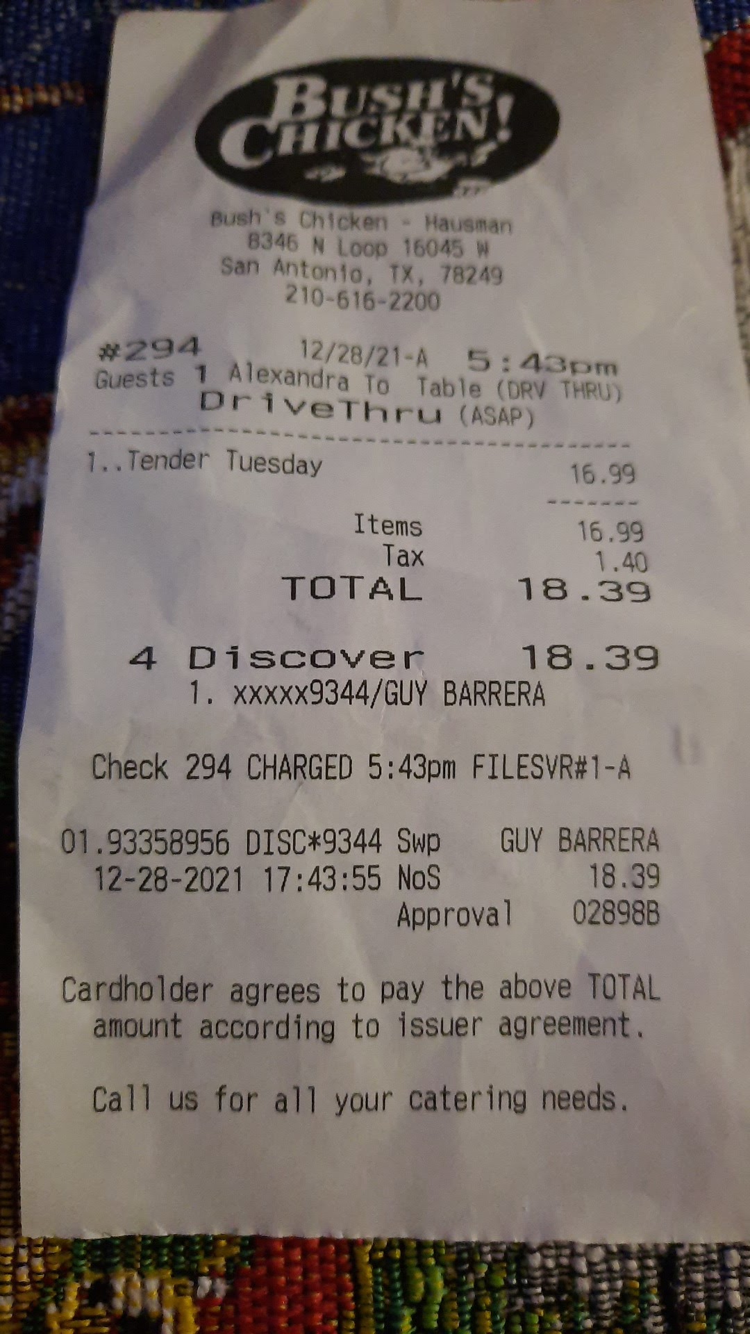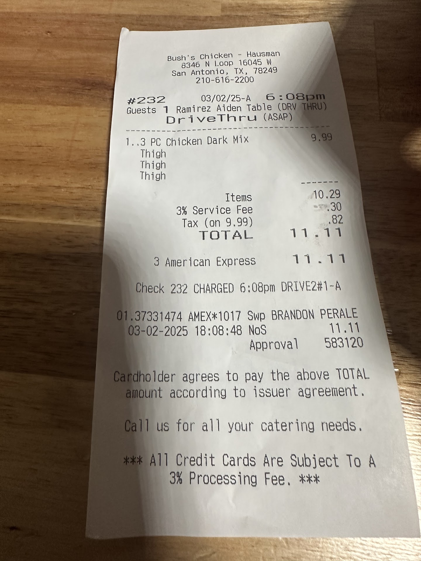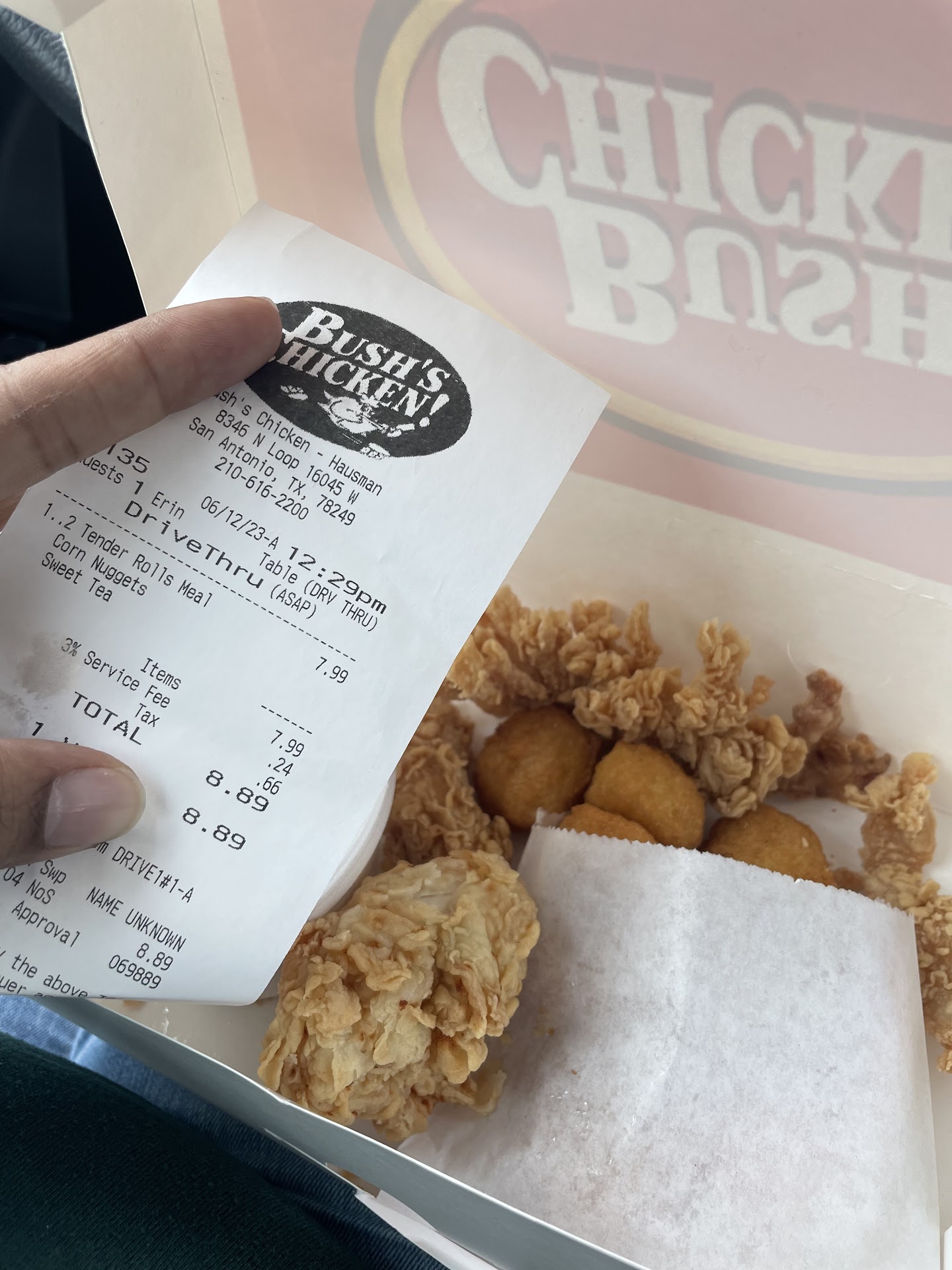 The atmosphere can be better than you'd think, because it has a good location for watching the sunset go down, over 1604. It also has some beautiful bushes with yellow flowers,palm trees at Las Palapas next door, & other plants. The big thing is the sunset. The people are pretty consistently the friendliest people in San Antonio. It's rare that I've felt like I had to wait too long. No one stands around thumping whatever metal thing they can find to thump, like at the Walmart in Helotes. No one shakes their keys profusely, like an O'Connor High School teacher, At My Car Door, another mother, In The Stairwell, with everyone watching her hypnotically torturing me, my next-door-neighbor, a police officer (raising them directly to my ear level). No one takes my $, but pretends they can't possibly cure a contagious infection on my skin, because they can't see it (this has been happening since 2001, as in two thousand & one). No one ruins my Thanksgiving by slamming her hand down hard on my table, several different times, at Salt Grass Steak House, Cheddar's, Mimi's. (The last 2 places had waiters who did this). No one comes out of the kitchen, smiles at me, & thwacks her tongs together, before going back in the kitchen ( La Madeleine's). No one noisily sweeps the parking lot next to my car (McD, Whataburger). Maybe I'm crazy, but I think it has something to do with it being Bush's Chicken, which I think is kind of a joke. I saw President Bush in 1997, after mafia tried to get me to jump from the Marriott. ( I'm a chicken, but I'm pretty sure I'm busting people who hypnotically torture teachers who might endure bad "counseling"). Bush's also has the best tea Anywhere, & crunchy ice. The chicken is...